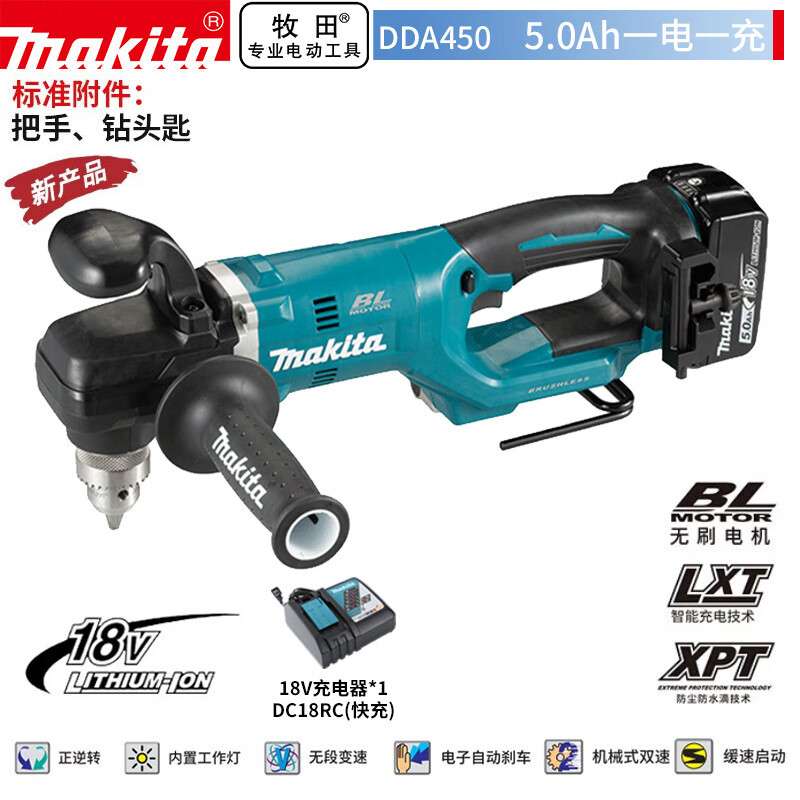 牧田DDA450RTE充电式角向电钻螺丝批手电钻13mm 18V5.0Ah两电一充