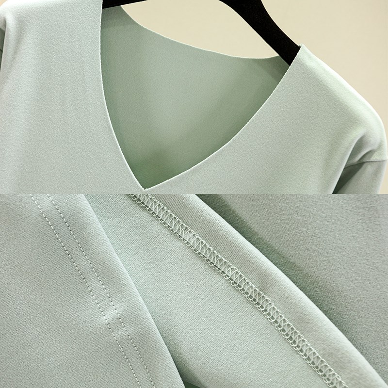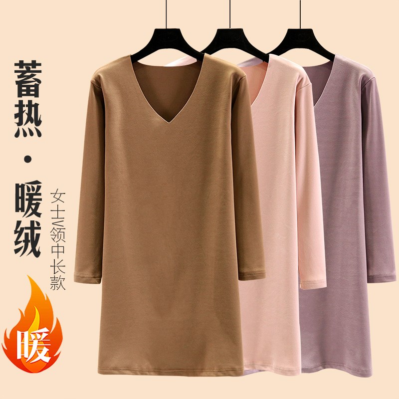 德绒V领中长款打底衫女士秋冬内搭加绒保暖长袖t恤家居休闲连衣裙