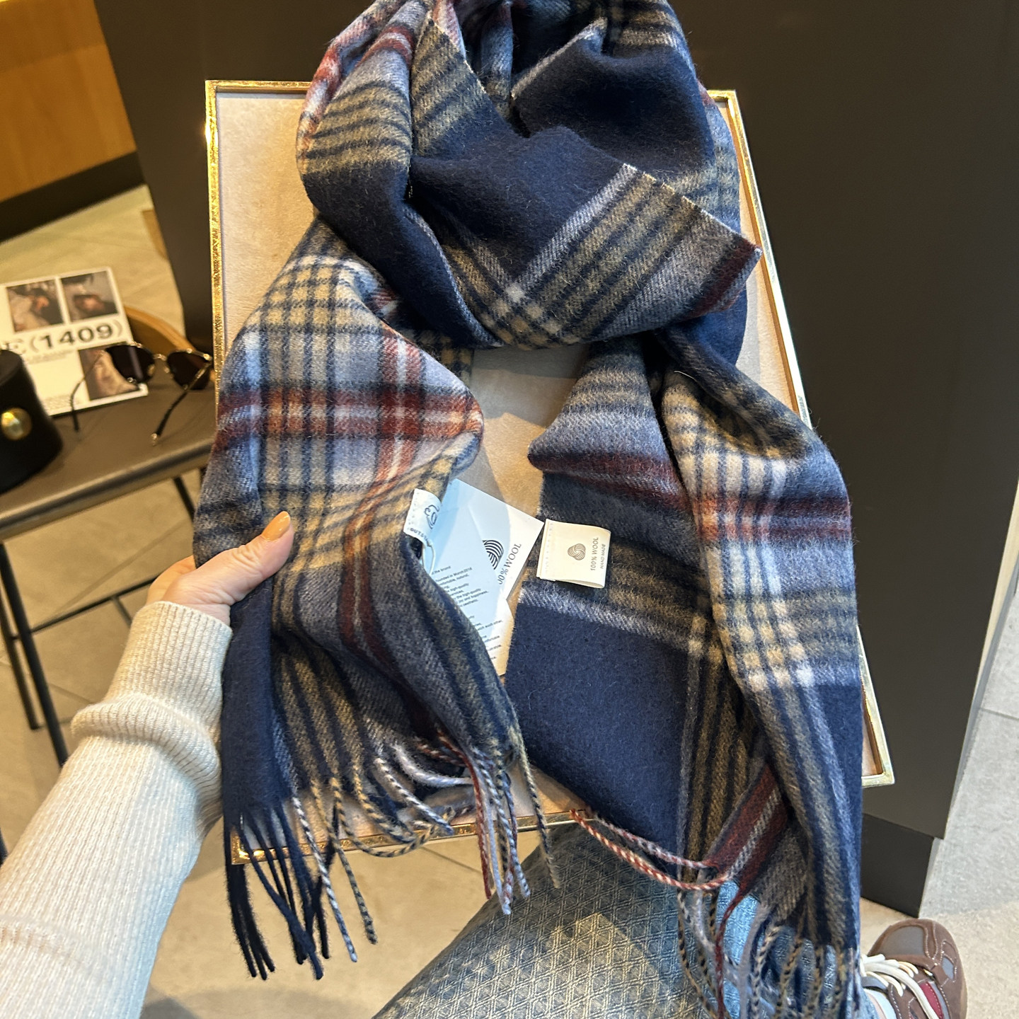 羊毛经典格子围巾女秋冬季2025复古英伦风披肩两用学生保暖小围脖