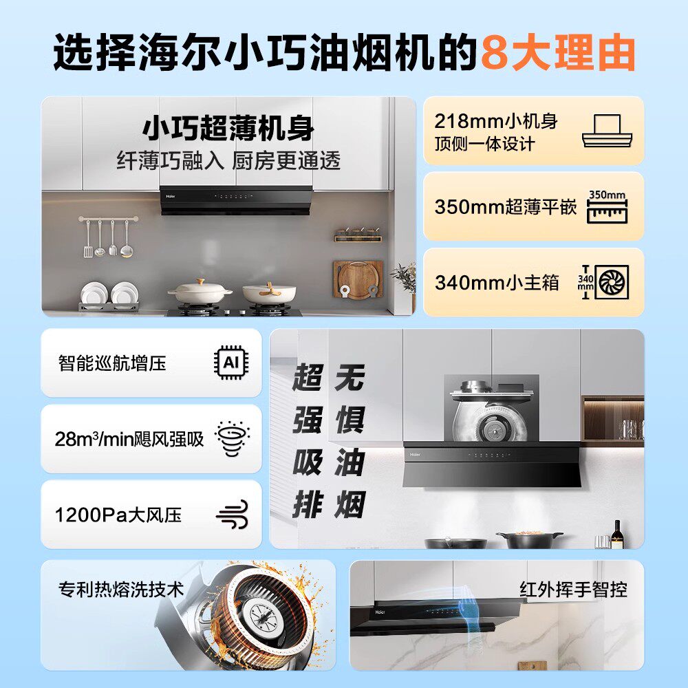 海尔麦浪全自动C50Pro吸抽油烟机家用厨房大吸力小红花静音油烟机