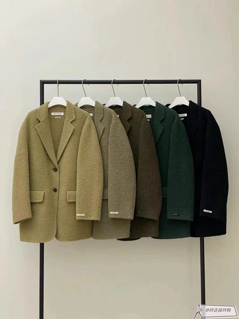 韩国东大门新款黑色双面苏丽羊绒羊毛西装呢子女羊毛大衣西服外套