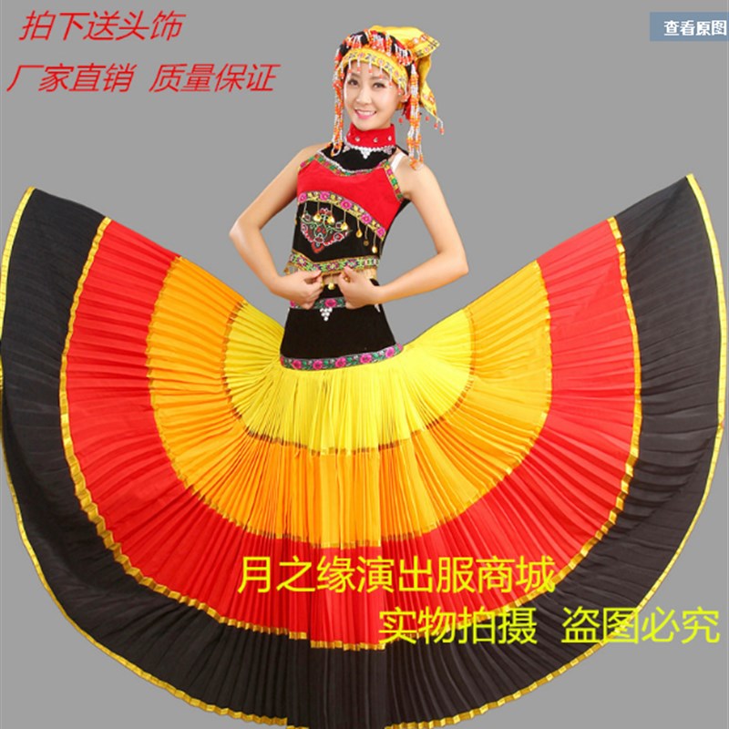 新款彝族七月火把节七彩大摆裙演出服民族舞蹈演出服装彝族大摆裙
