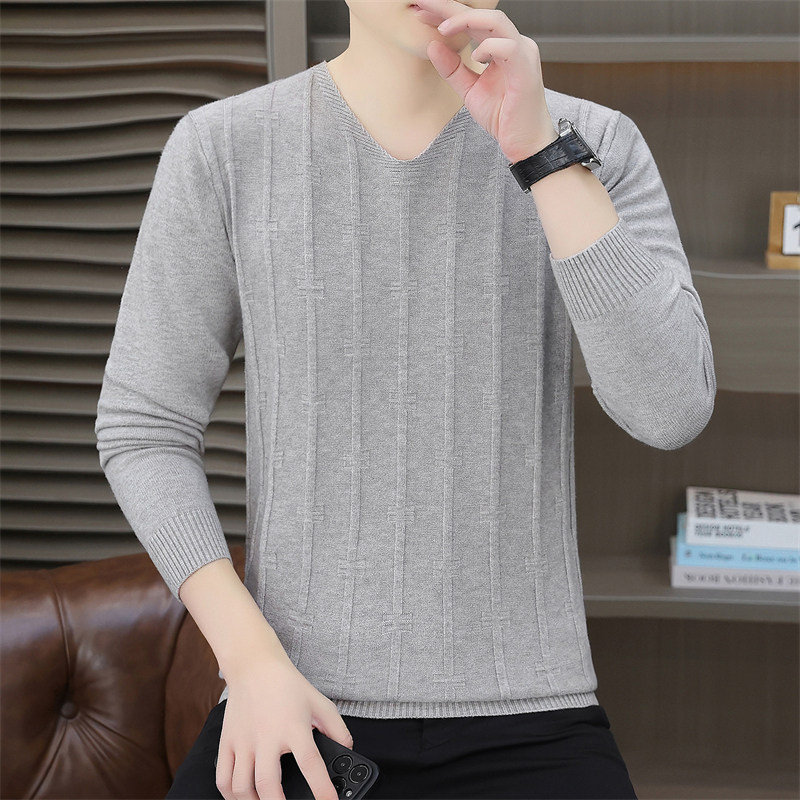 雅鹿薄款条纹V领修身毛衣男纯色简单商务内搭打底衫针织衫毛线衣