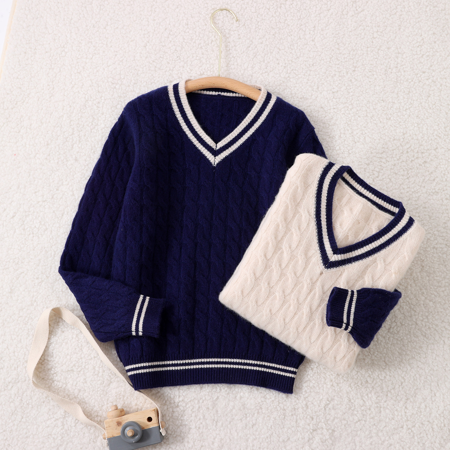 儿童羊毛衫男童扭花V领毛衣女童英伦风针织衫宝宝内搭打底衫