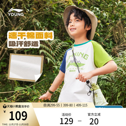 李宁儿童速干衣短袖T恤夏季夏款男童装女中大童舒适百搭运动衣服