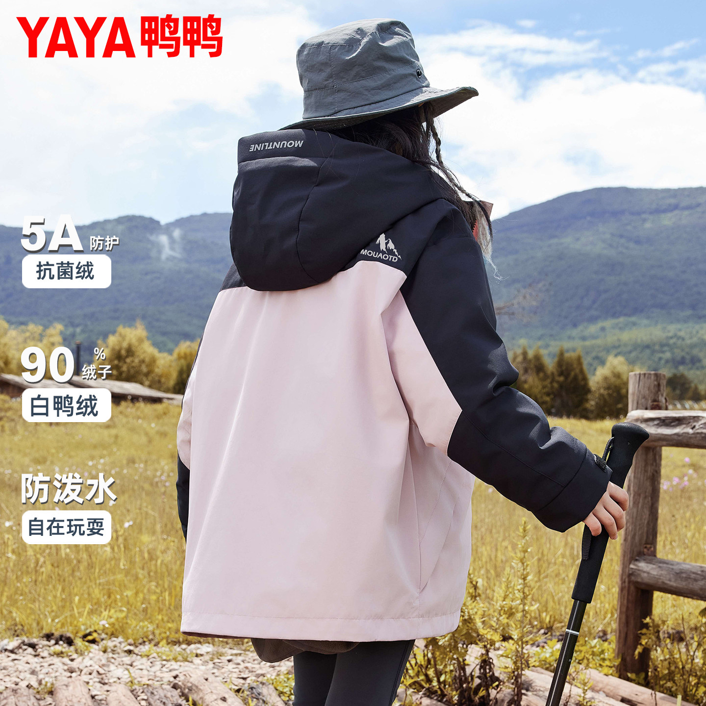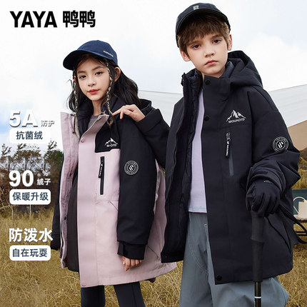 鸭鸭儿童羽绒服三合一冲锋衣男童中长款加厚女中大童三防户外冬装