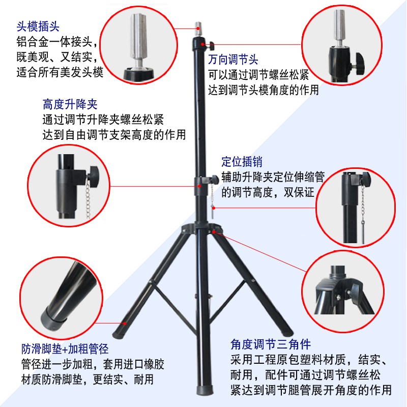 头模支架假发假人头三脚架模头模具公仔模特头架子落地三角架美发