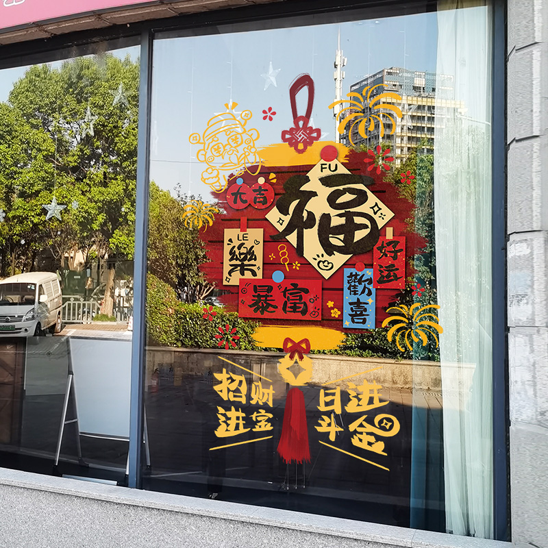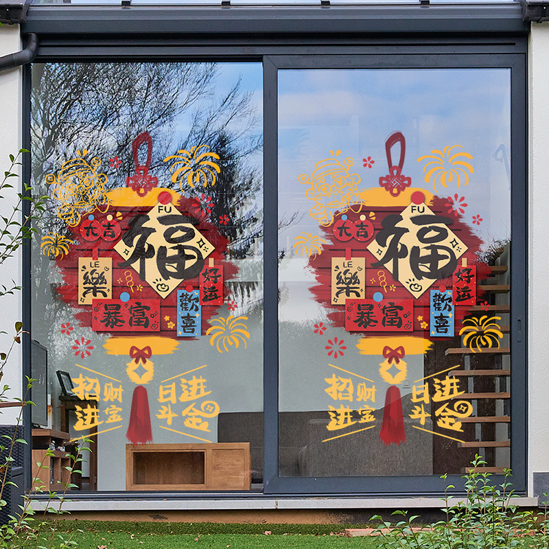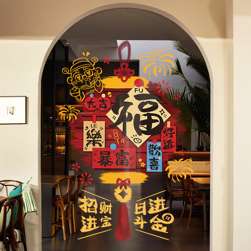 福字招财进宝新年贴纸喜庆春节2026马年布置店铺橱窗玻璃装饰贴画