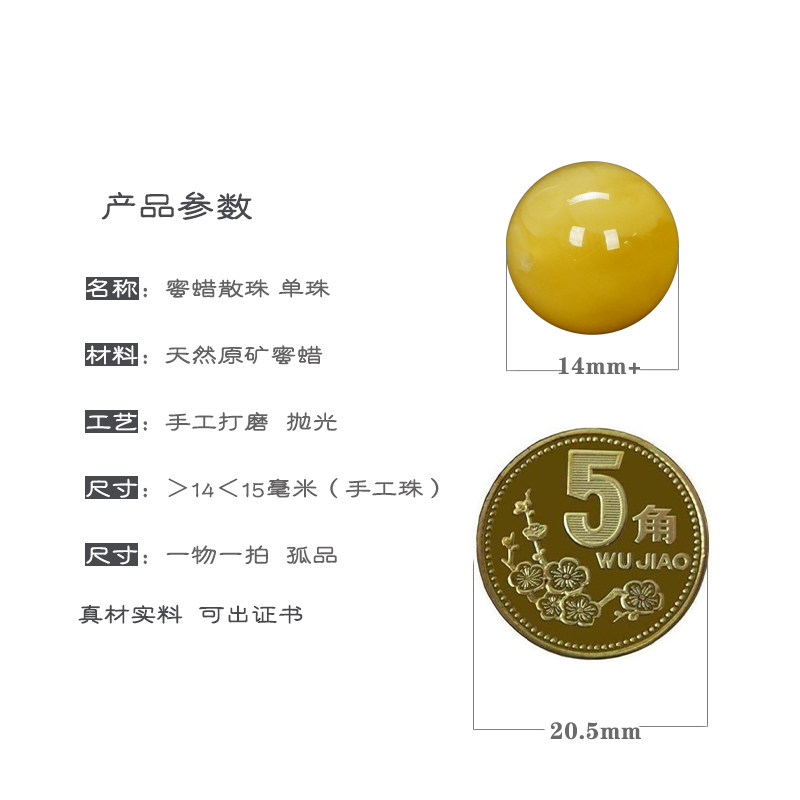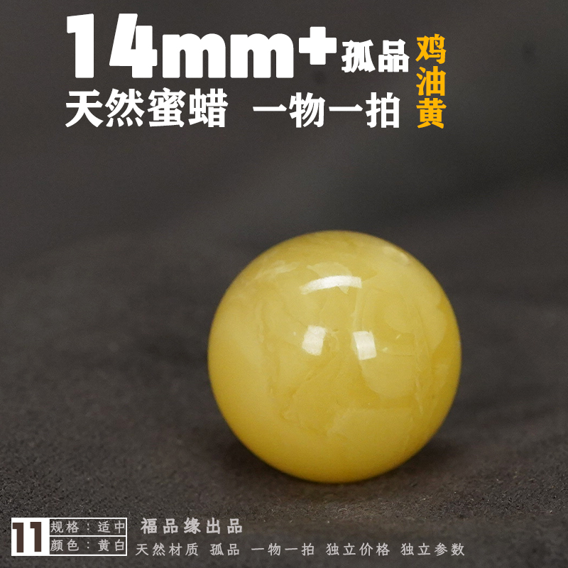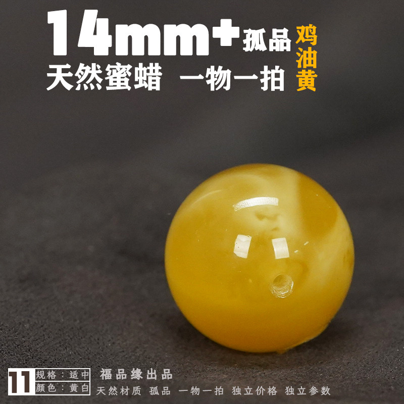 14mm天然蜜蜡圆珠单裸珠原矿保真