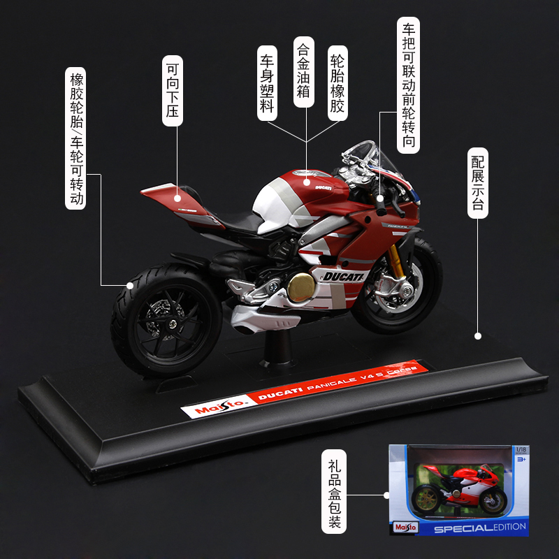 摩托车模型美驰图1 18杜卡迪1199 V4 S重型机车男孩玩具蛋糕摆件