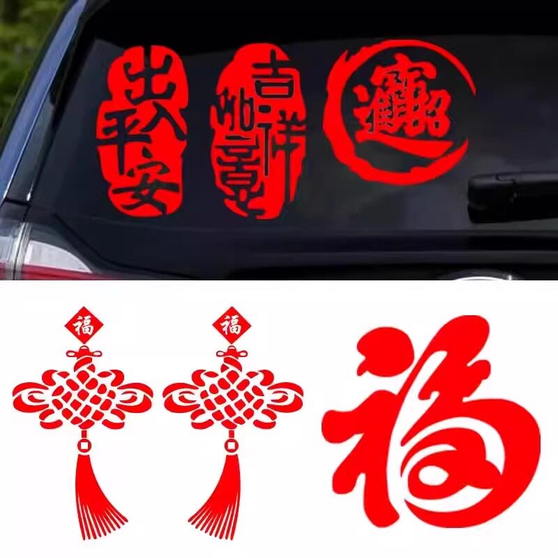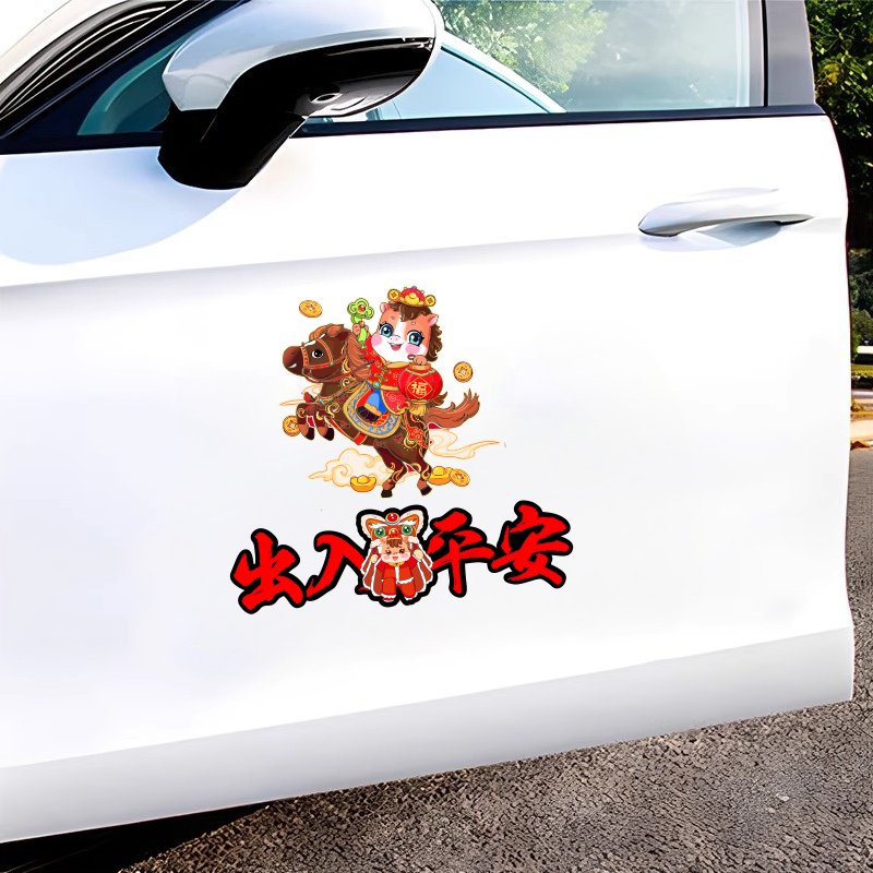2026新年出入平安车贴马年春节小对联电动车过年福字汽车装饰贴纸
