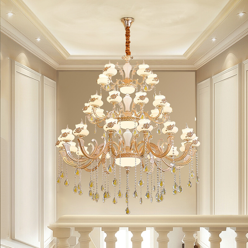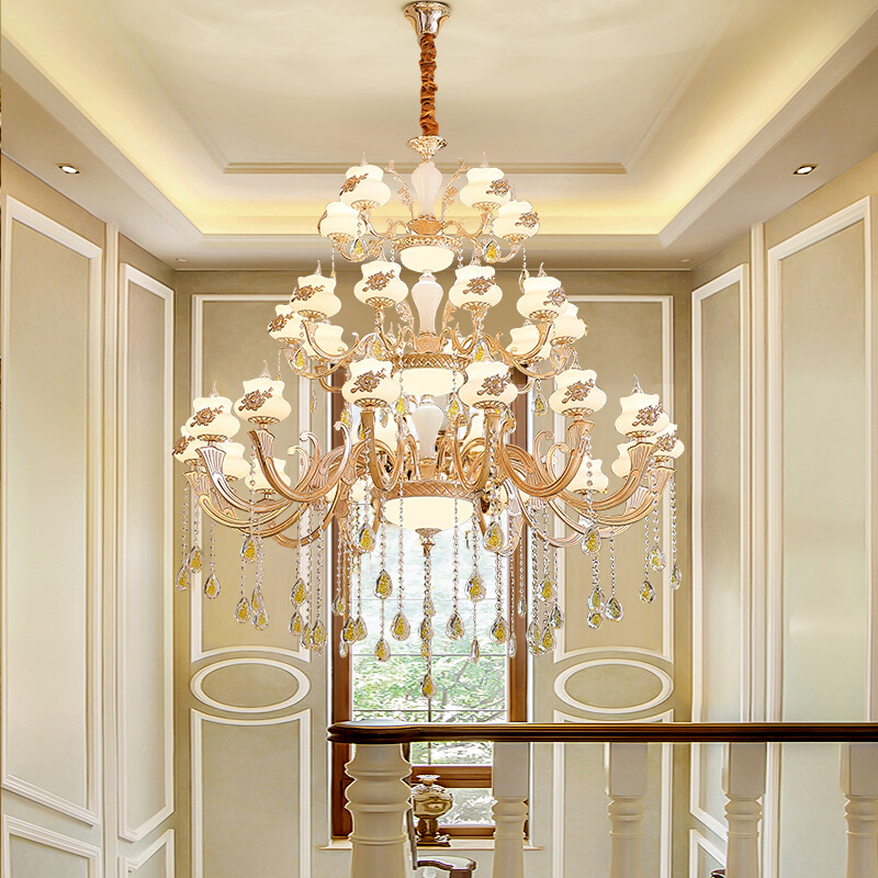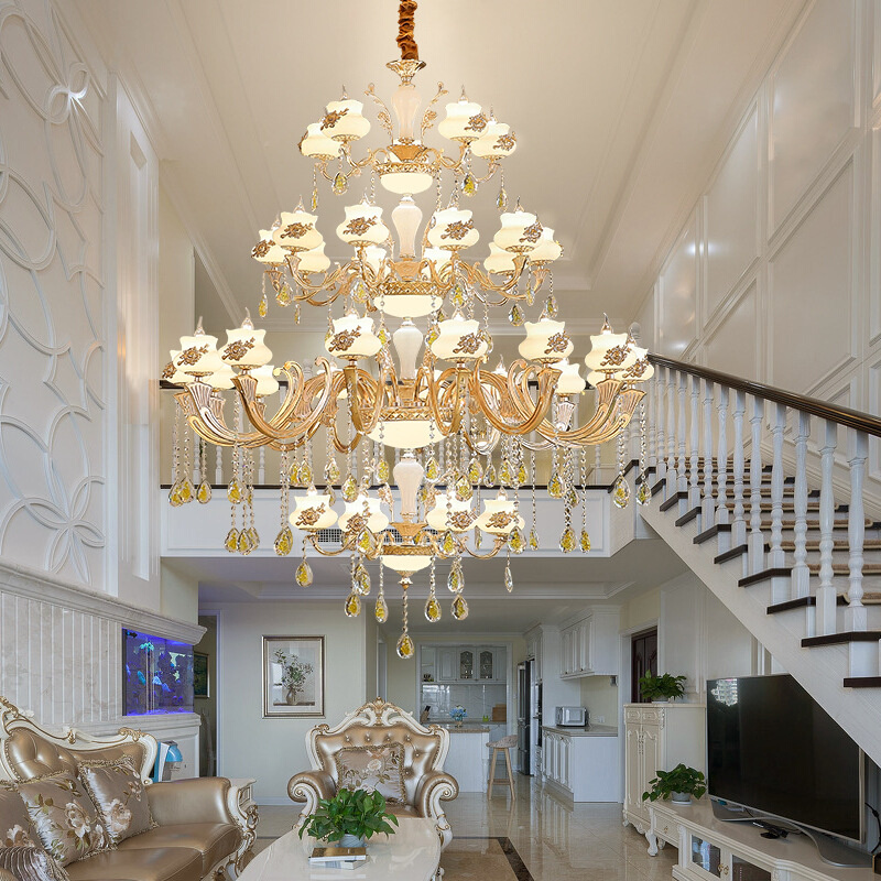 复式楼大吊灯别墅客厅三层水晶灯欧式楼中楼大厅楼梯间长吊灯批发