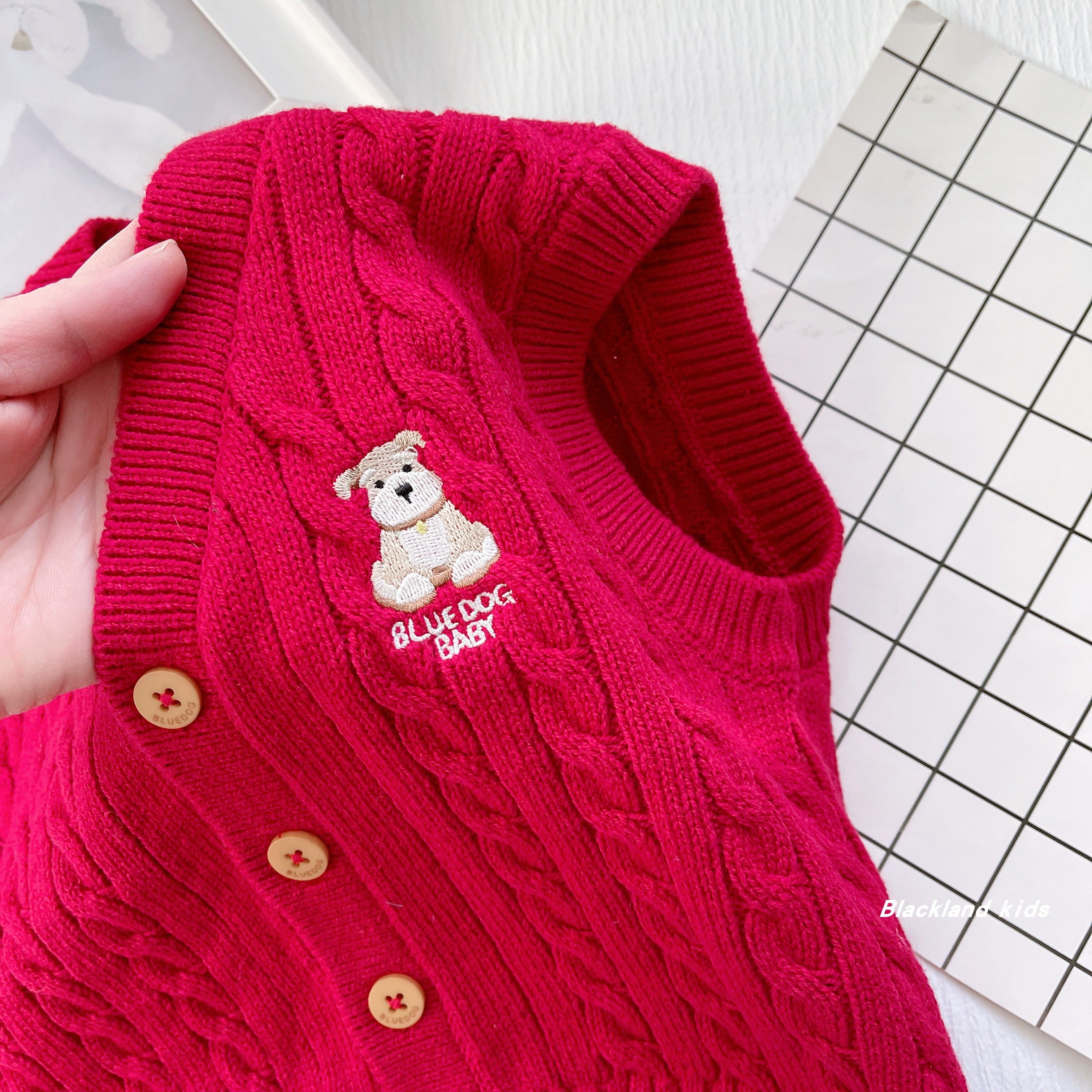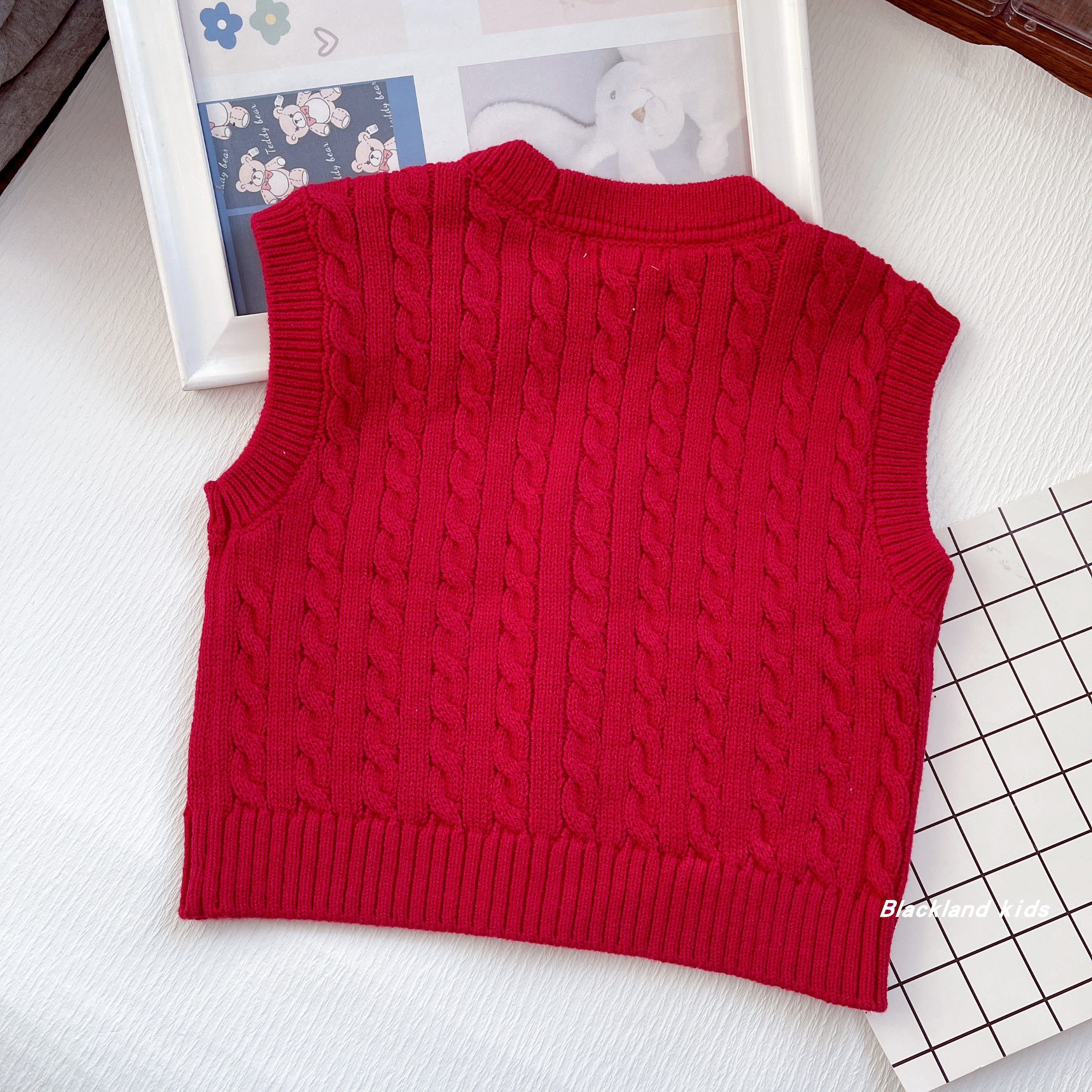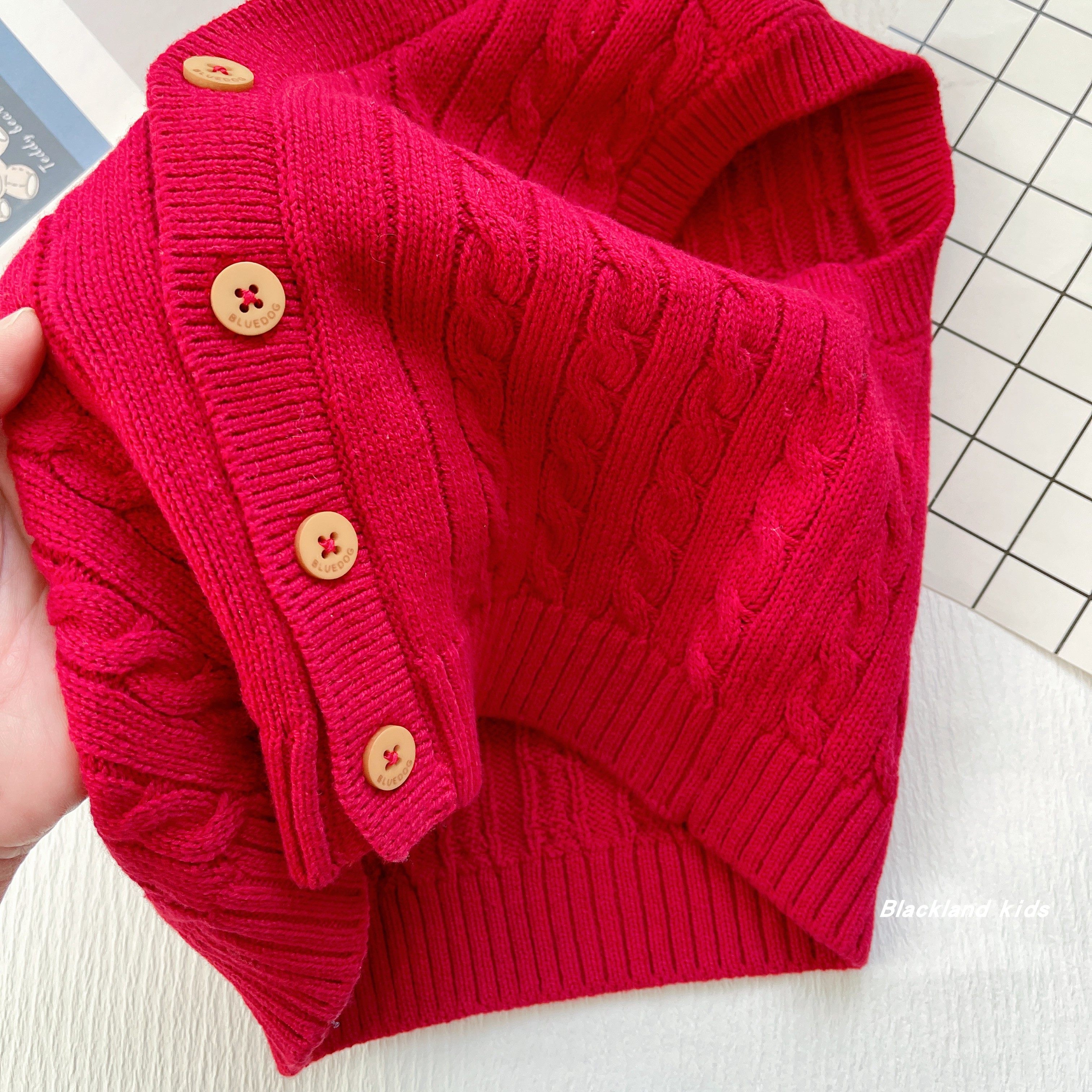 春秋冬款童装 男童女童儿童宝宝红色毛衣马甲V领麻花开衫坎肩背心