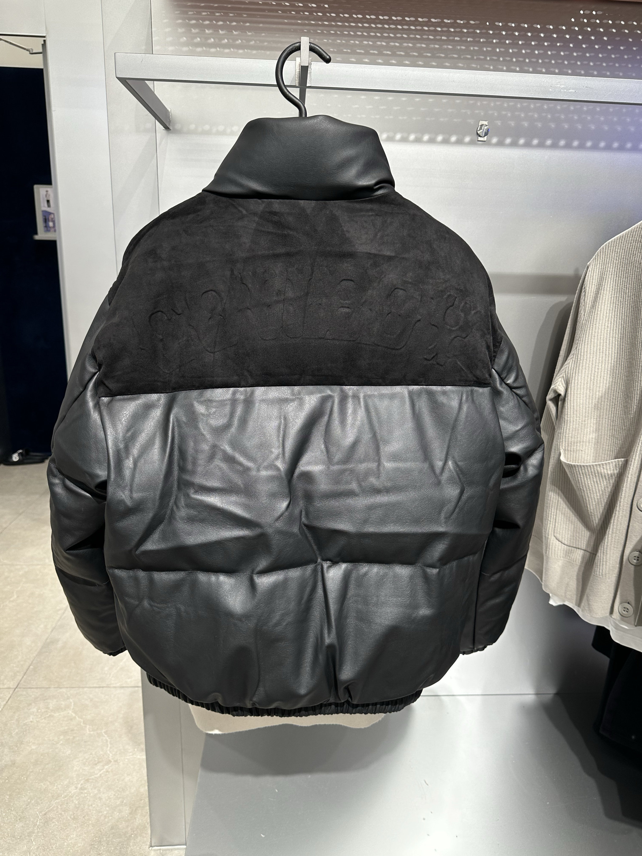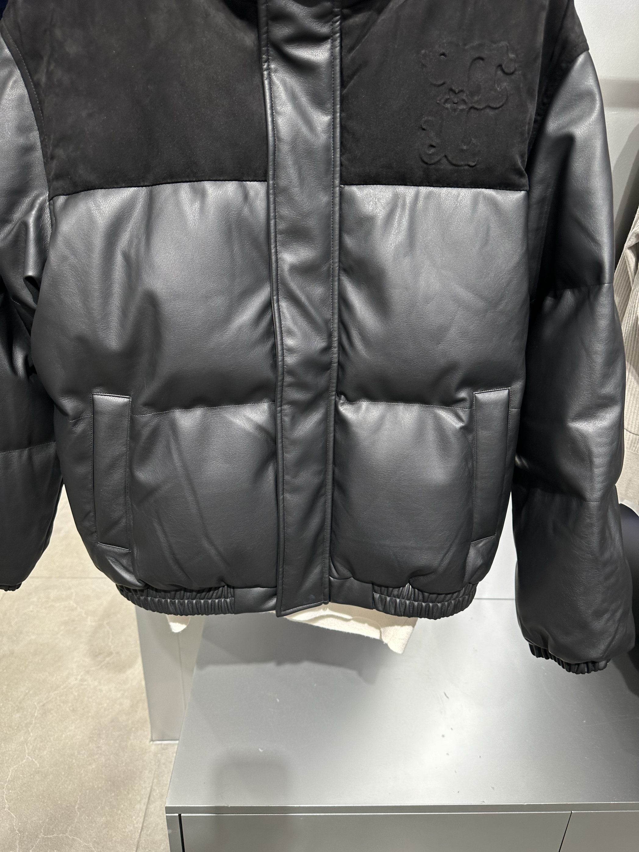 BAACE4118 太平鸟男装冬季新款黑色PU皮休闲保暖拼接立领羽绒服潮