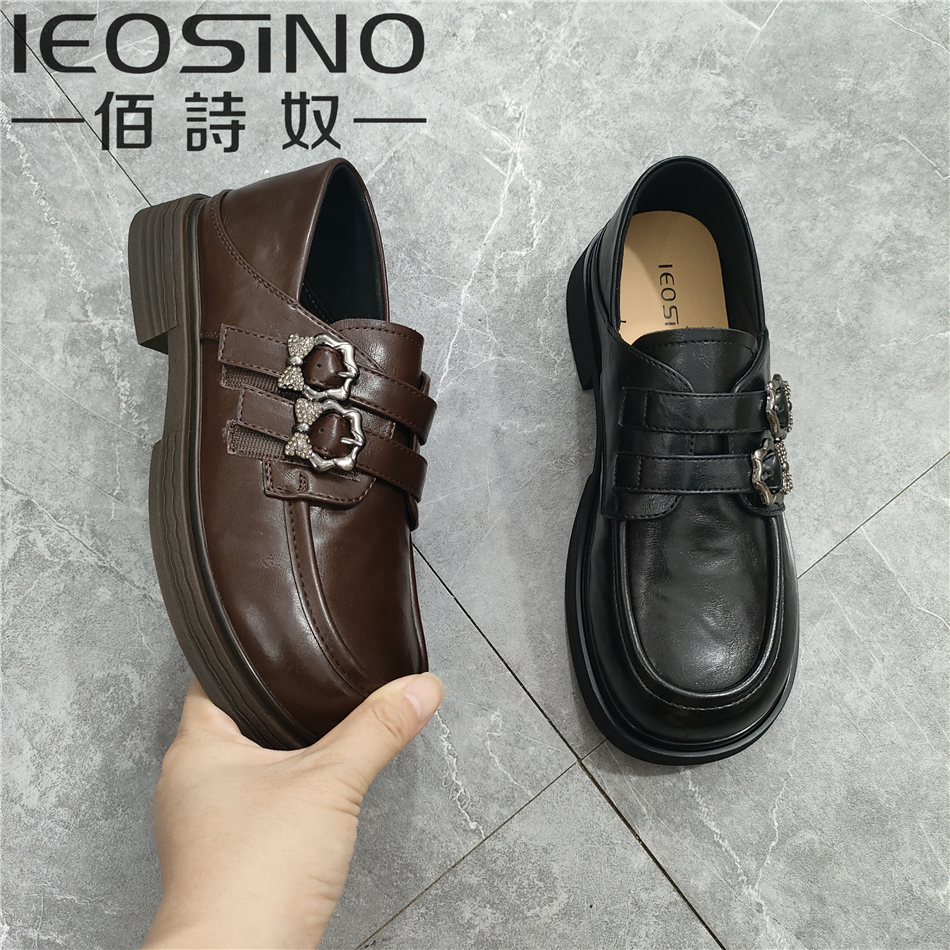 佰诗奴2025新款真皮秋季厚底乐福鞋女百搭小个子休闲轻便单皮鞋女