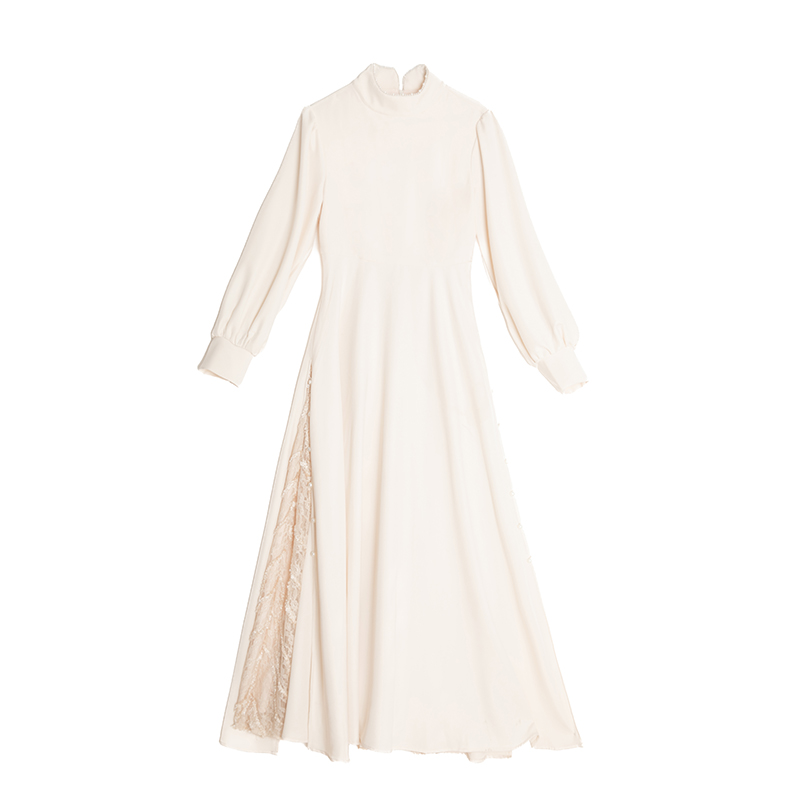 破茧|秋冬连衣裙开衩西装蕾丝高领打底法式内搭温柔知识分子长裙