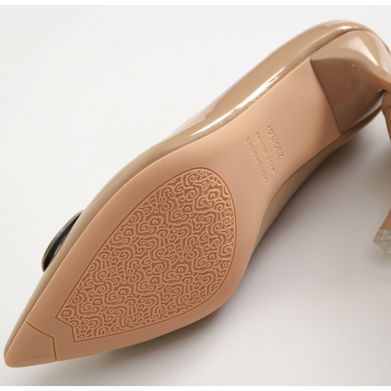 高跟鞋女2024新款V家扣尖头细跟法式漆皮浅口春秋季气质单鞋F318