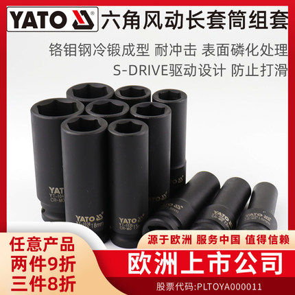 易尔拓 YATO 12.5mm系列风动长套筒组套 风炮外六角套筒配件大飞