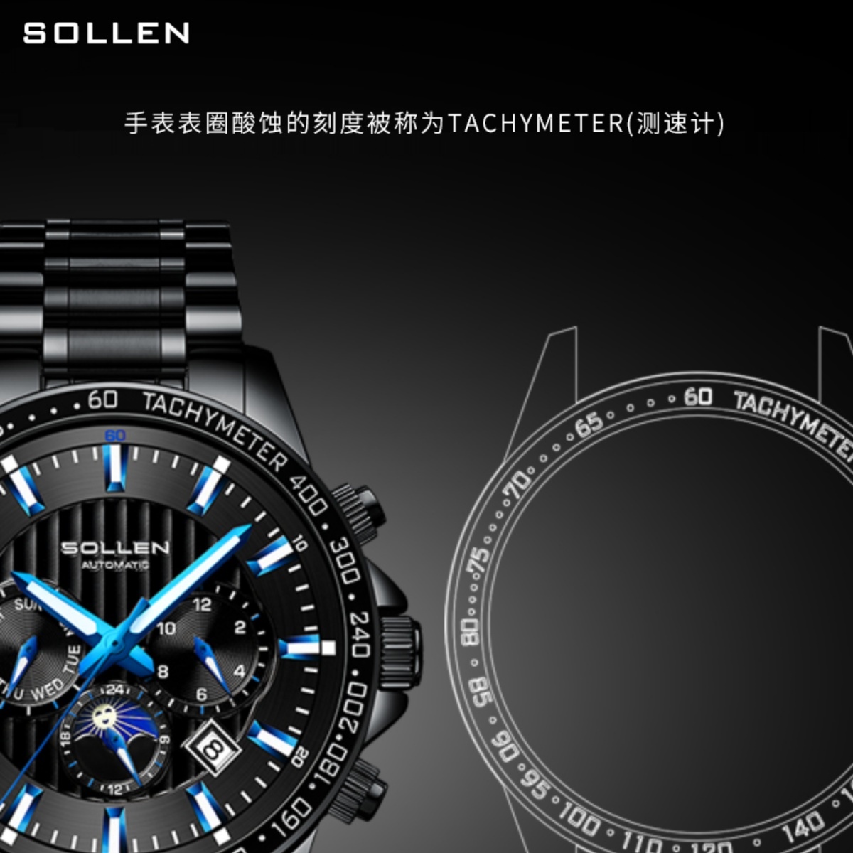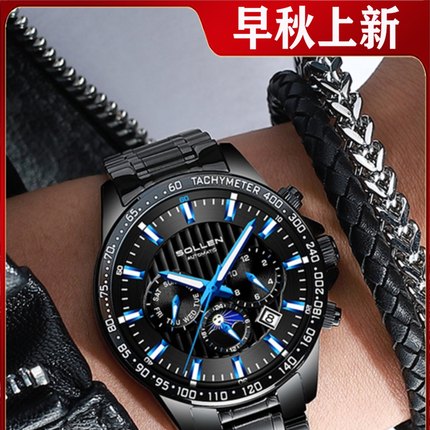 瑞士正品手表男士全自动机械男式防水运动款多功能黑武士夜光男表