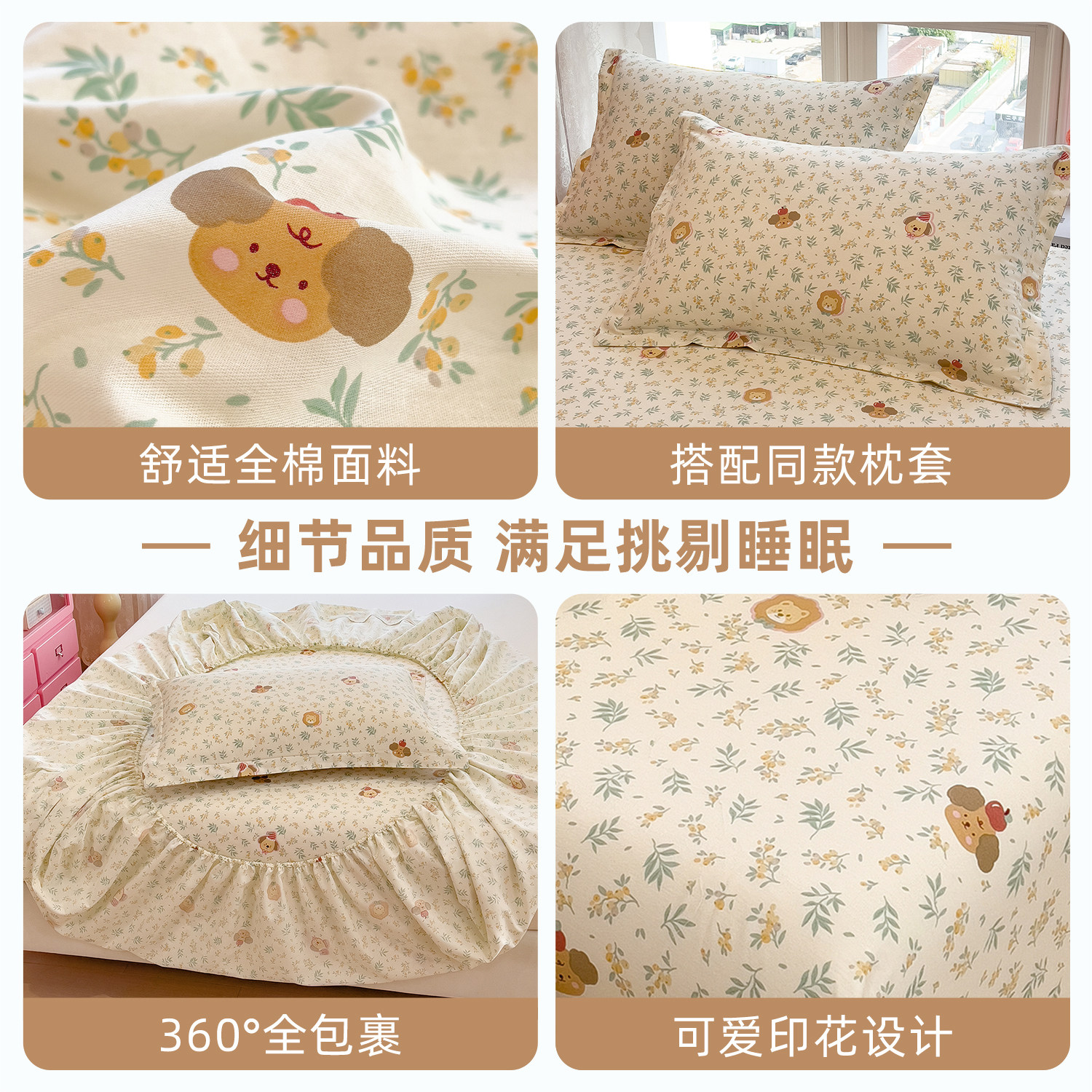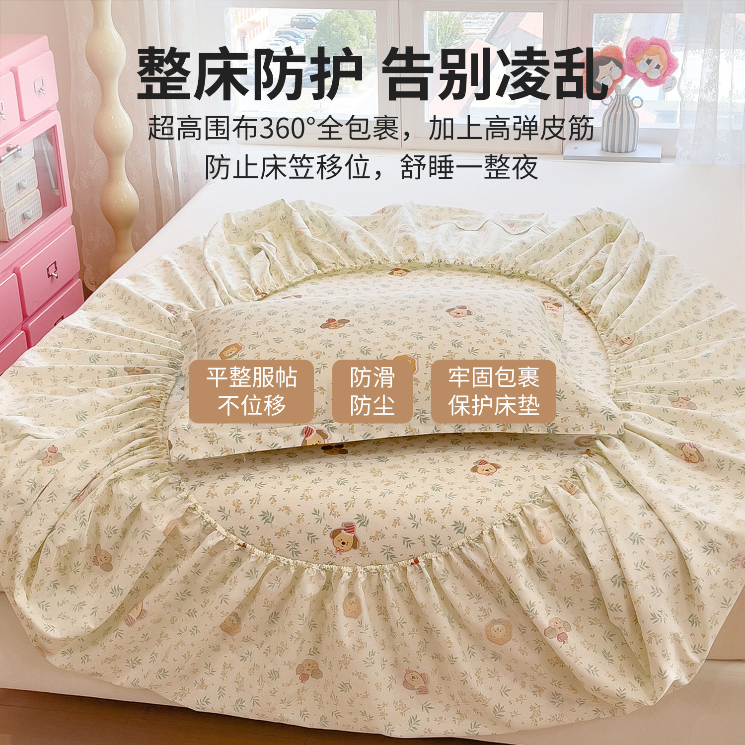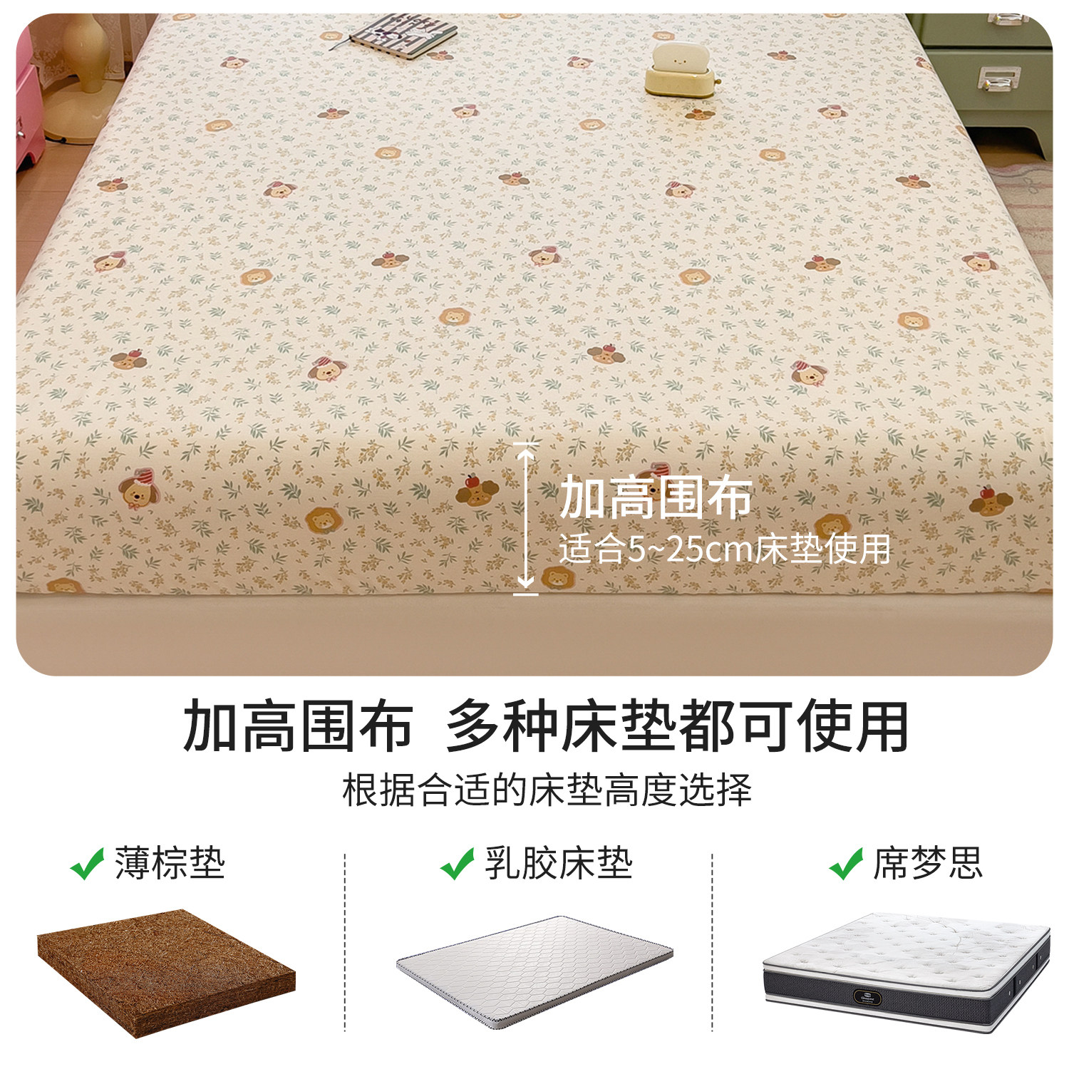 纯棉印花床笠单件全棉全包床垫
