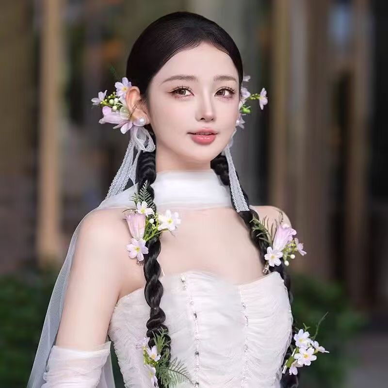新娘森系新款头饰超仙造型花环花朵发夹结婚写真婚纱礼服发饰配饰