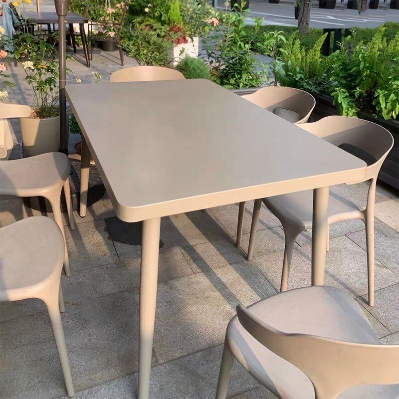 网红户外餐桌椅碳钢桌子r长方形不锈钢餐桌露天商用餐厅酒吧室外