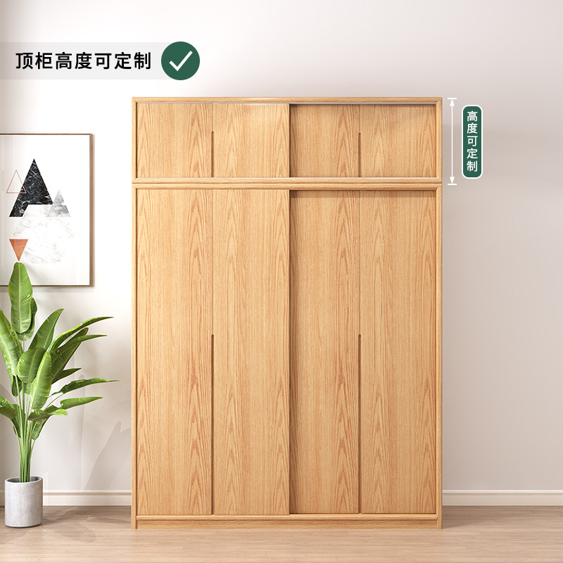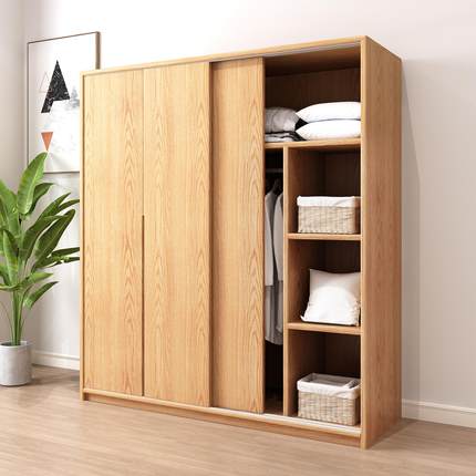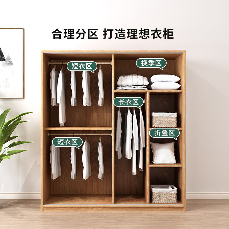 天坛家具全实木橡木推拉门衣柜家用卧室北欧原木风小户型移门柜子