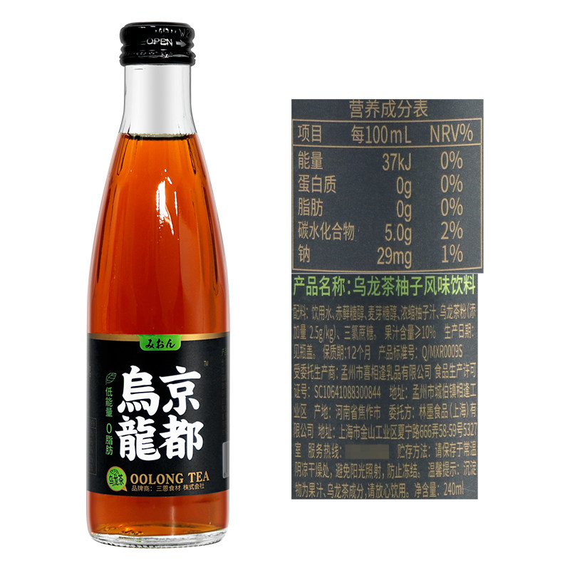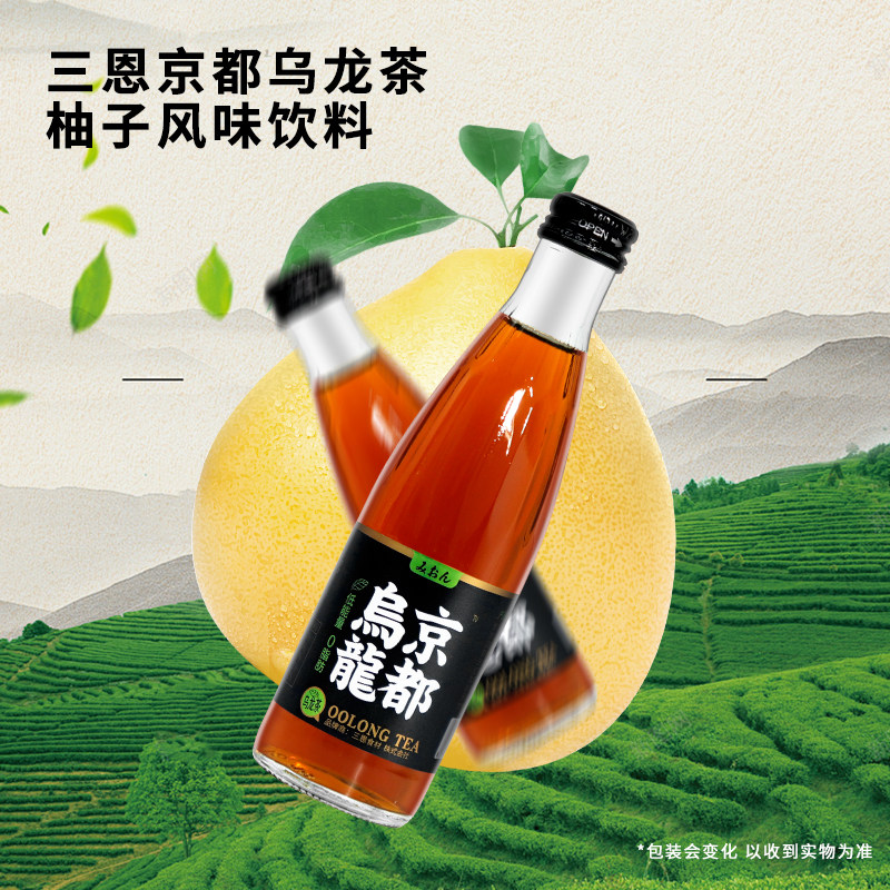 三恩京都乌龙茶饮料240ml*15瓶装整箱白桃柚子风味瓶玻璃瓶高颜值