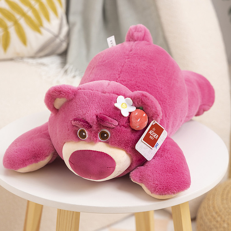 迪士尼正版趴姿草莓熊睡觉抱枕趴趴小熊毛绒玩具送女朋友靠垫创意