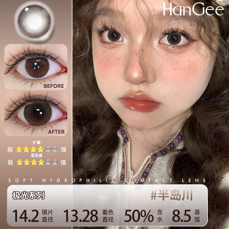 【新品日抛试戴2片装】HanGee美瞳大直径隐形眼镜棕色狗狗眼