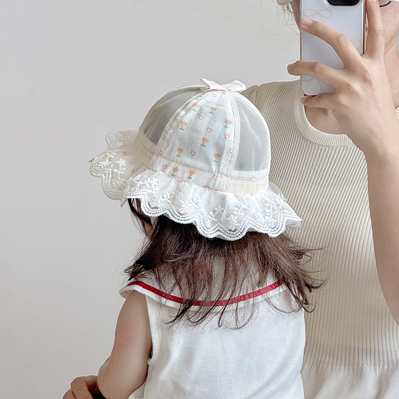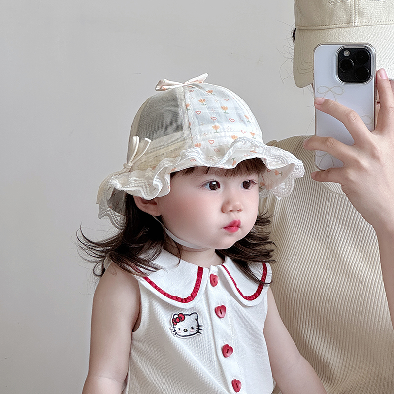 婴儿帽子夏季薄款遮阳防晒透气网眼公主帽女宝宝渔夫帽小月龄盆帽