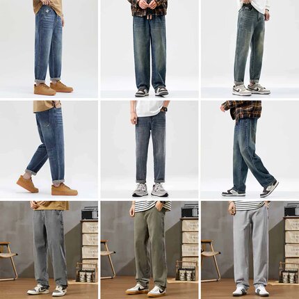 清仓特卖hansca复古水洗抽绳牛仔裤男2025春秋季新款马骝直筒长裤
