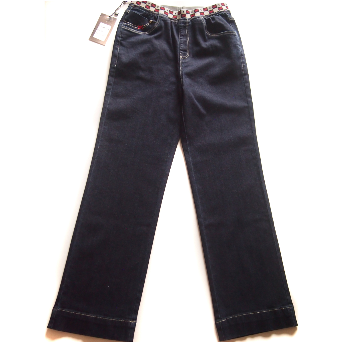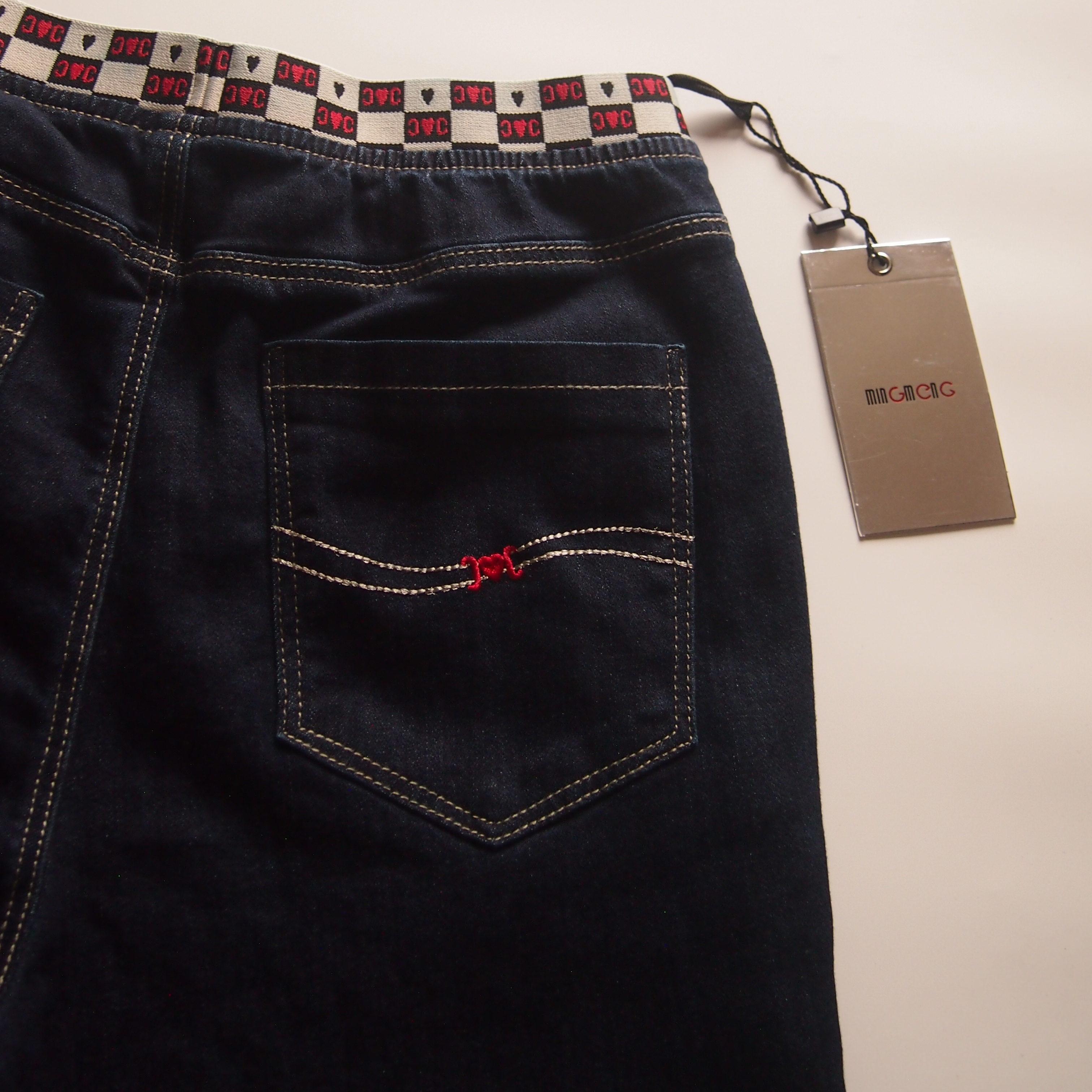 2025名梦大码女裤秋季中高腰松紧腰牛仔裤修身大直筒阔脚裤M2092