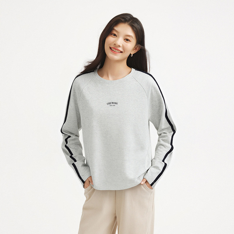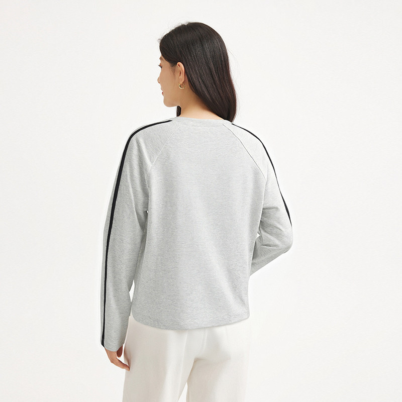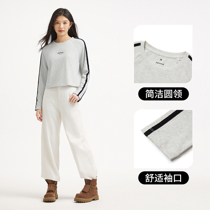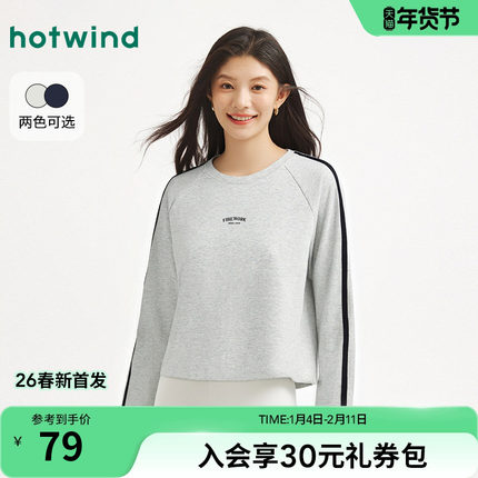热风女士长袖T恤上衣2026年春季新款拼边长袖T恤韩系减龄内搭上衣