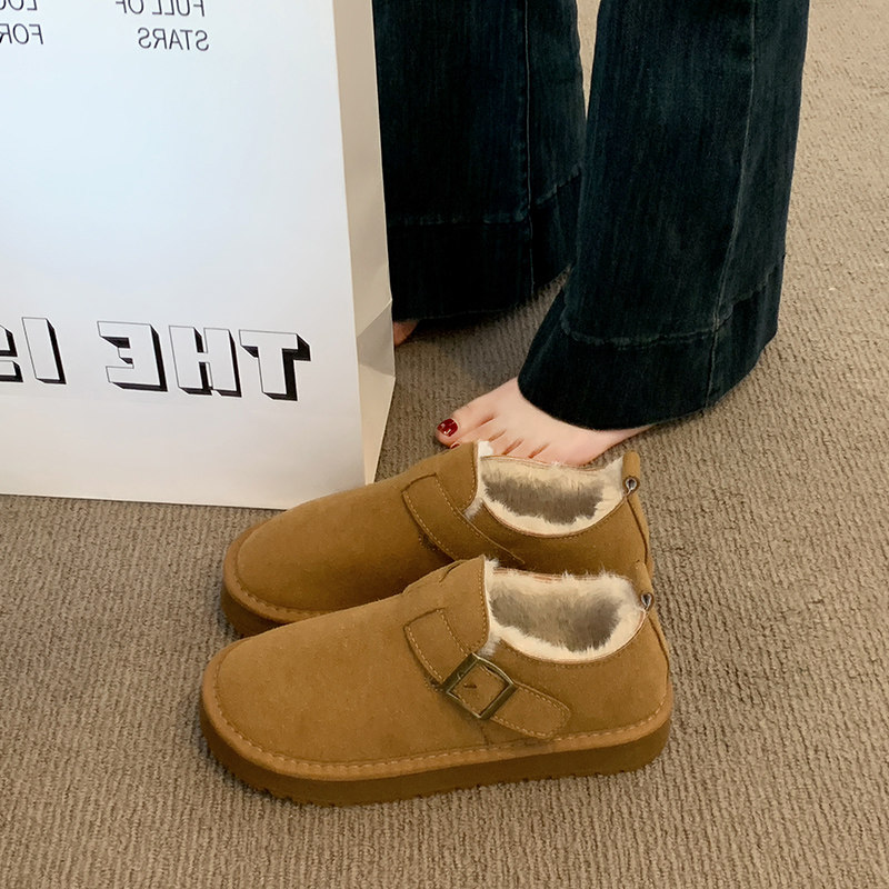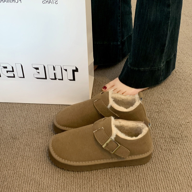 平底加绒保暖全包勃肯鞋毛毛棉鞋女2025新款冬季雪地靴乐福豆豆鞋