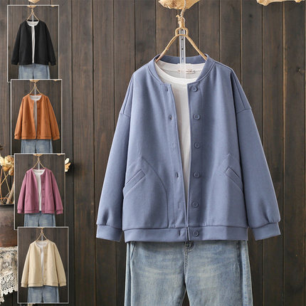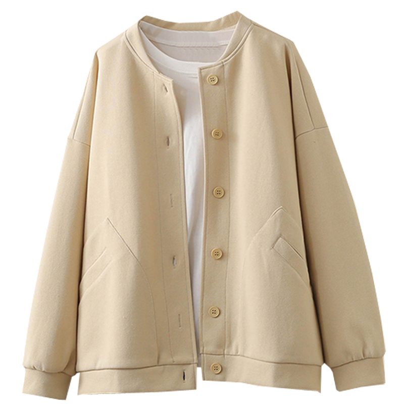 春秋大码200斤简约圆领卫衣开衫韩版宽松慵懒风休闲棒球服外套潮