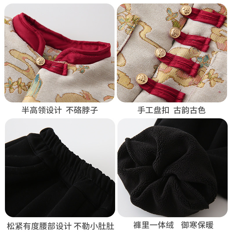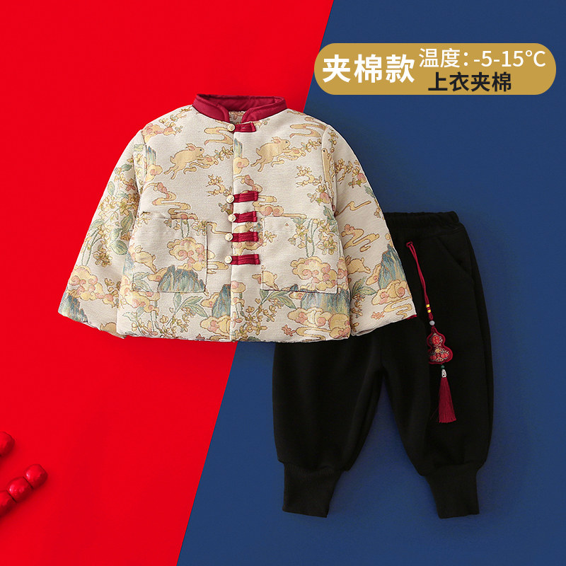新中式拜年服男童棉服冬季儿童唐装夹棉上衣宝宝过年汉服国风棉袄