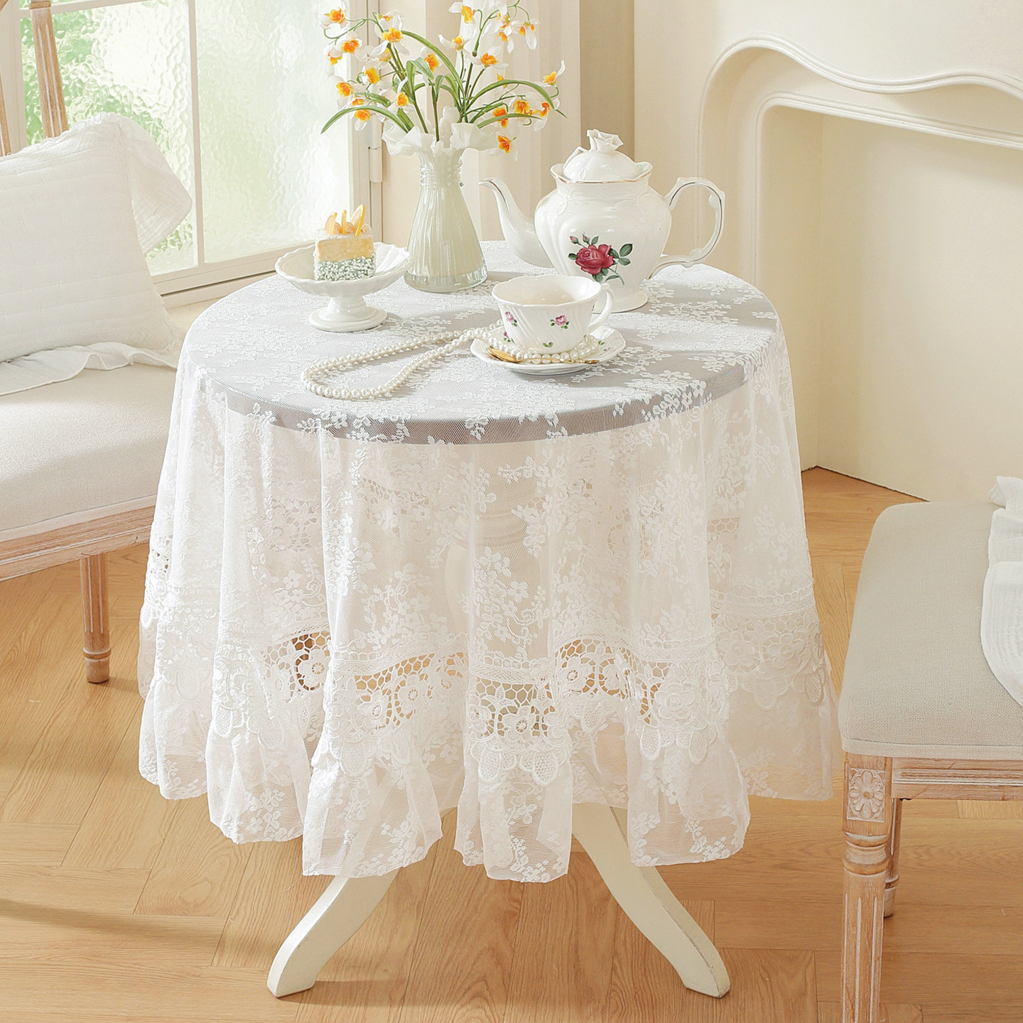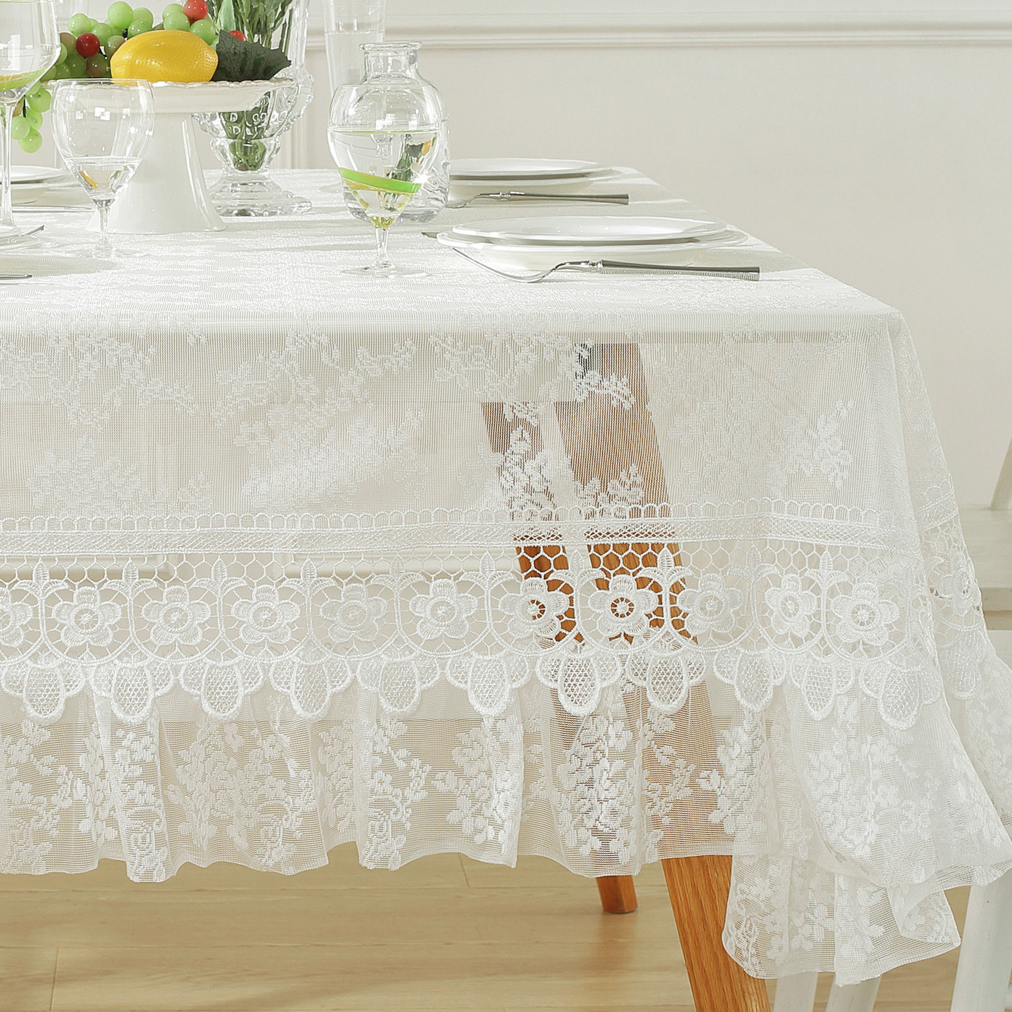 唯米5101法式蕾丝桌布白色镂空花边装饰长方形餐桌布家用圆形台布