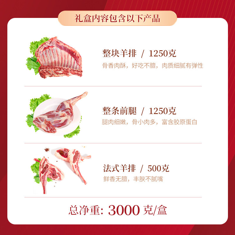 内蒙锡盟羊肉礼盒888型羊排羊腿法6斤888型年货礼品羊肉礼券礼卡