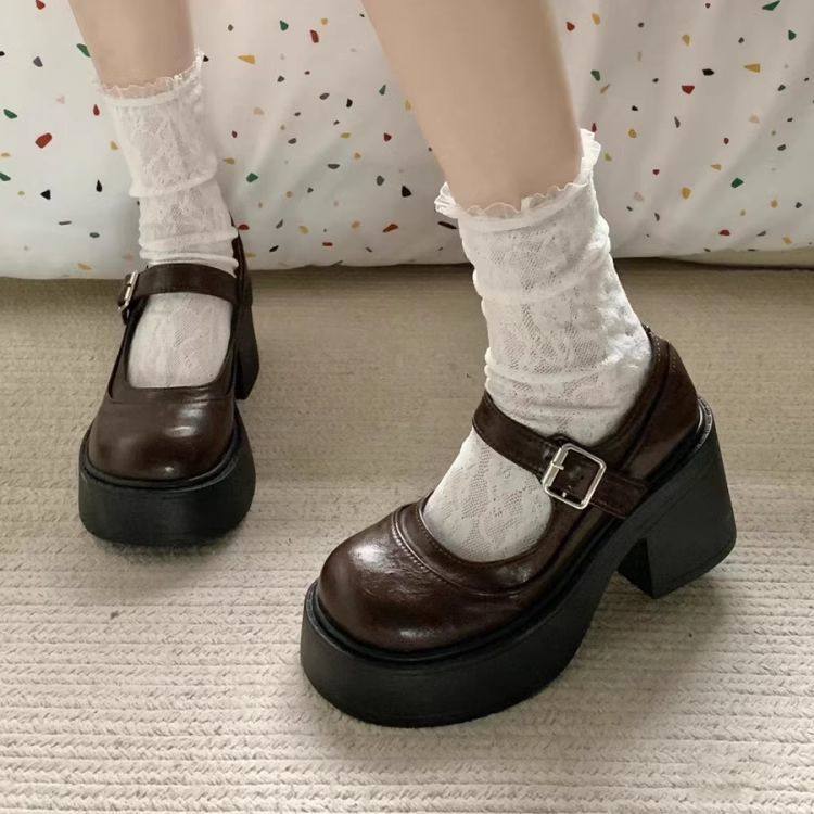 小个子玛丽珍高跟鞋2025年新款春季厚底复古学院风浅口单鞋小皮鞋