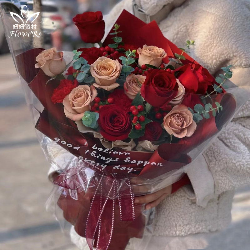 圣诞包装纸红色系防水双色欧雅纸鲜花包装纸花束包花纸花束包花纸