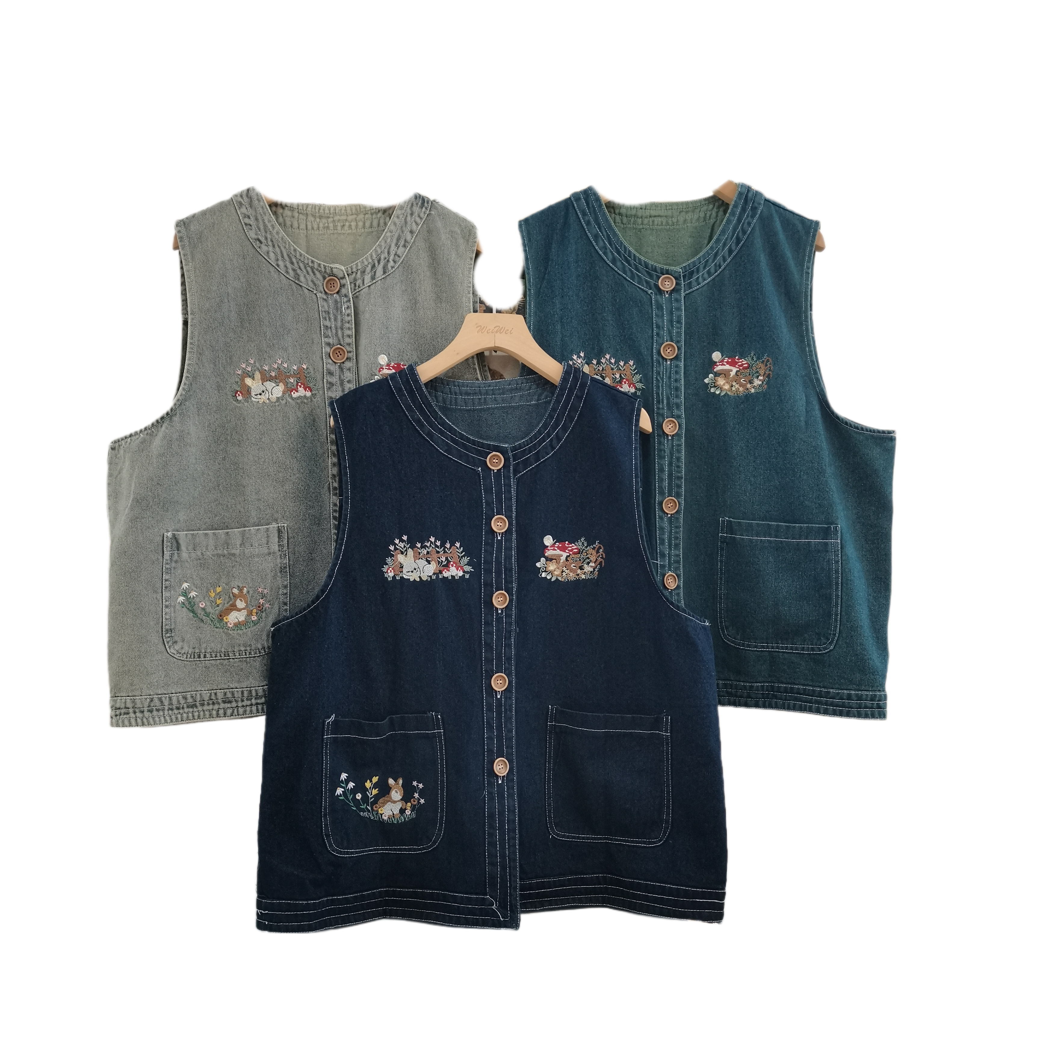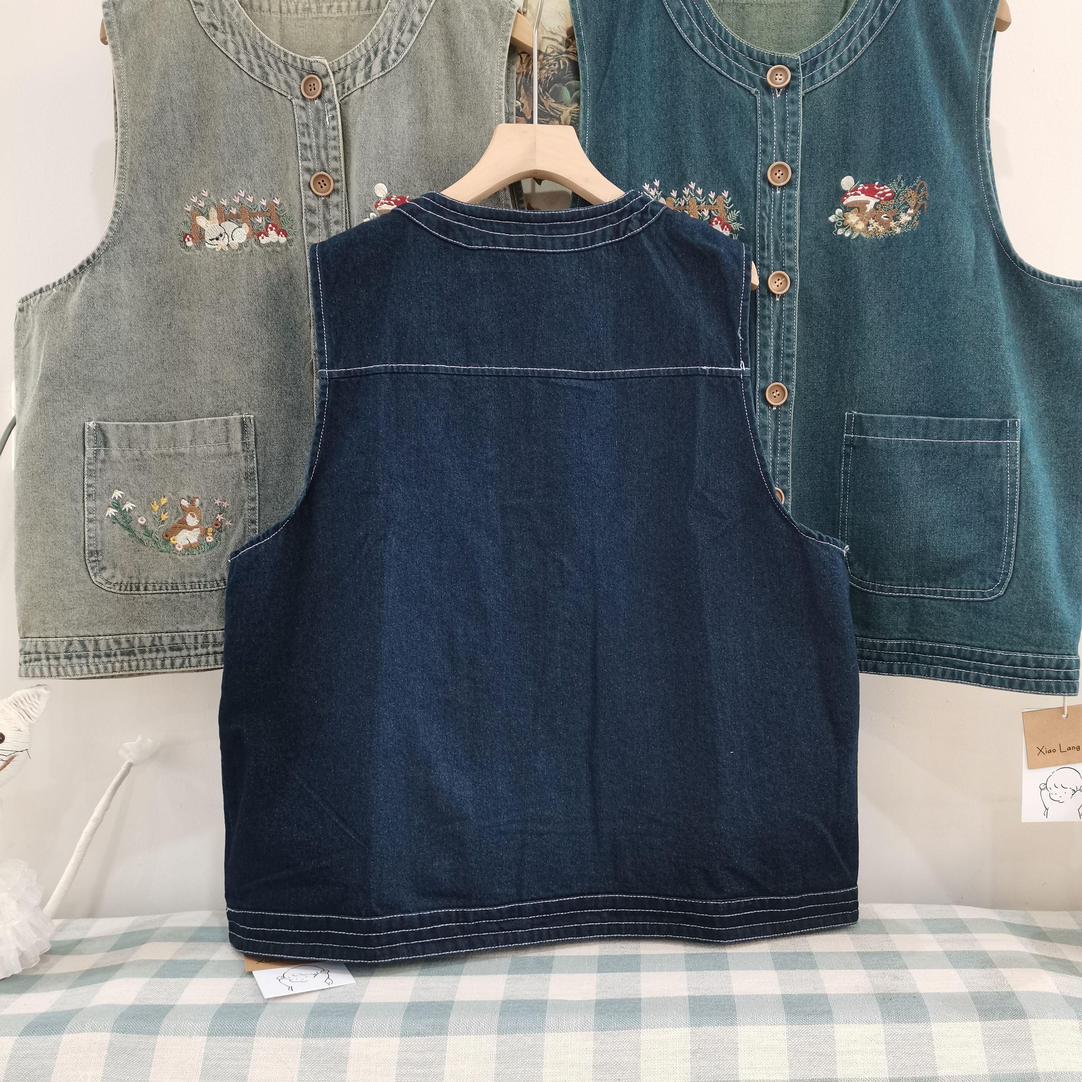 日系森女甜美童趣刺绣小众牛仔马甲背心女春季新款百搭设计感外套