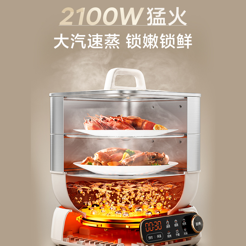 苏泊尔电蒸锅多功能家用三层不锈钢蒸煮炖一体多层早餐机2025新款