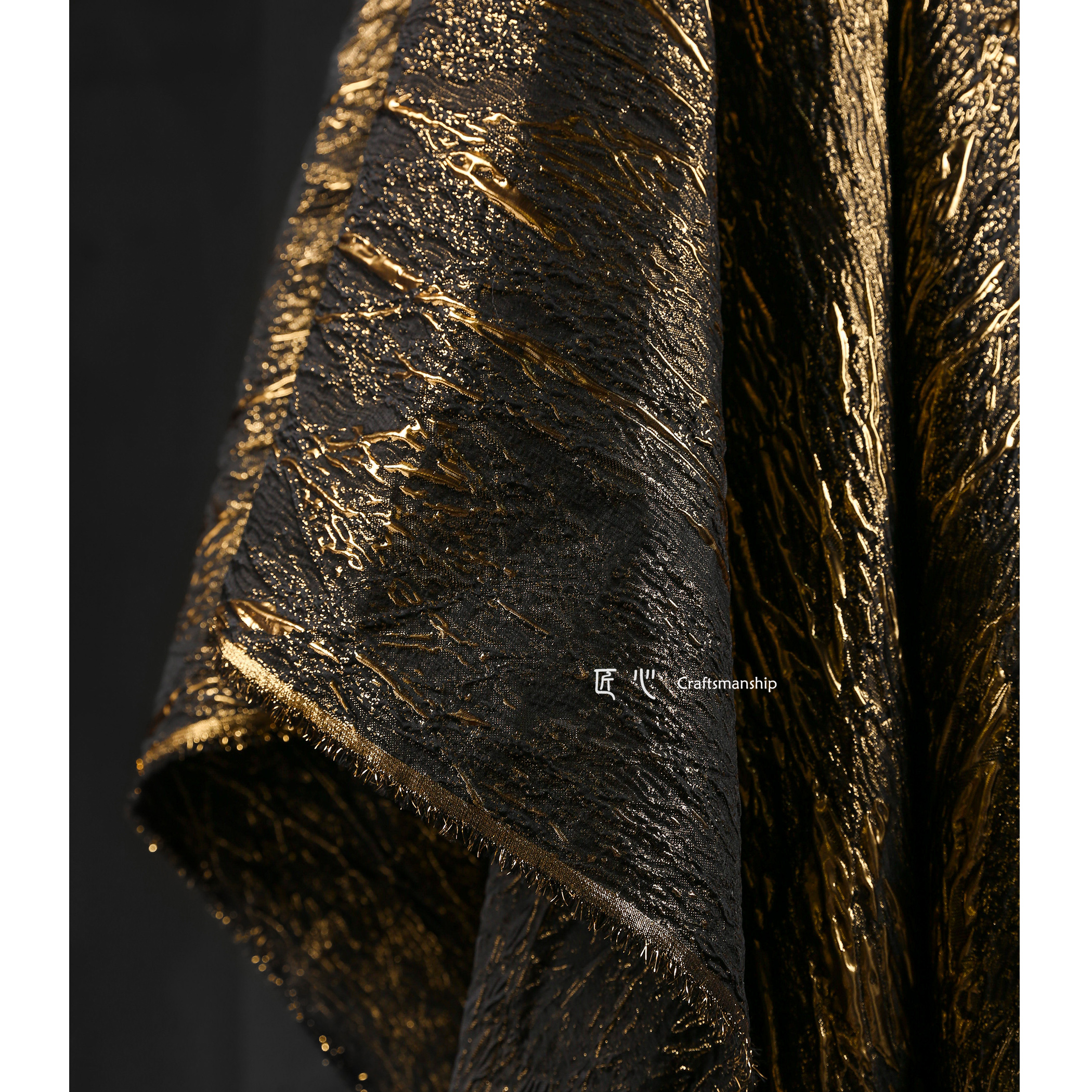 黑金脉纹起伏鎏金提花布创意复古立体闪光重肌理廓形服装设计面料