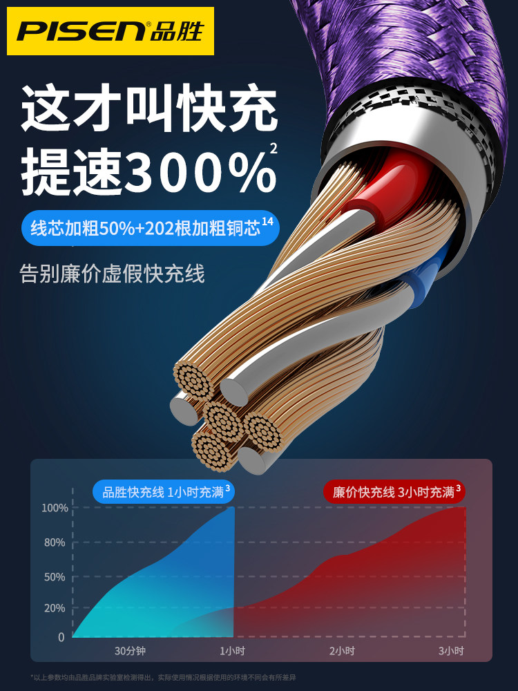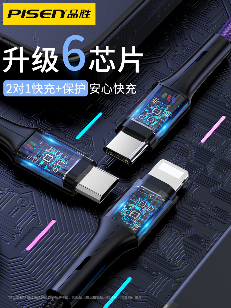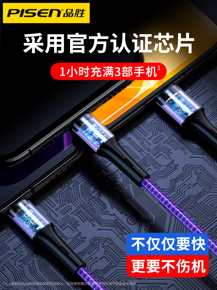 品胜充电器一拖三快充多口车载充电器数据线三合一万能通用型多功能充电器手机多头套装适用于华为苹果13插头