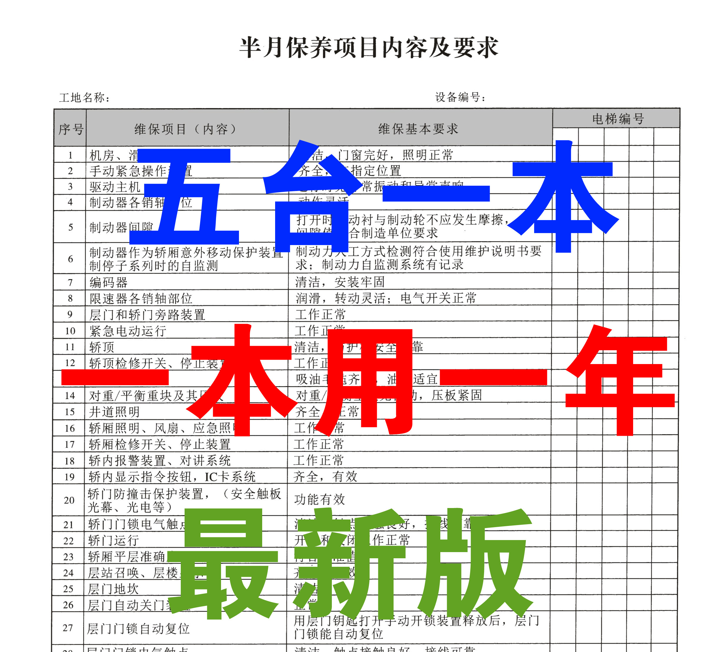 电梯维保本电梯直梯维修保养记录本五台一本杂货梯维修保养记录本