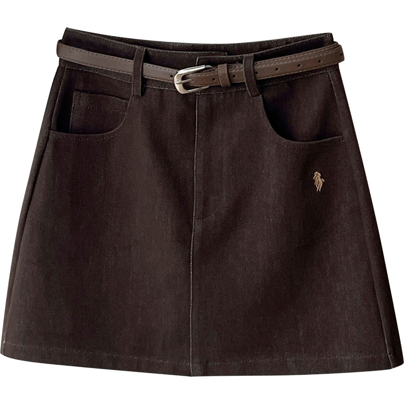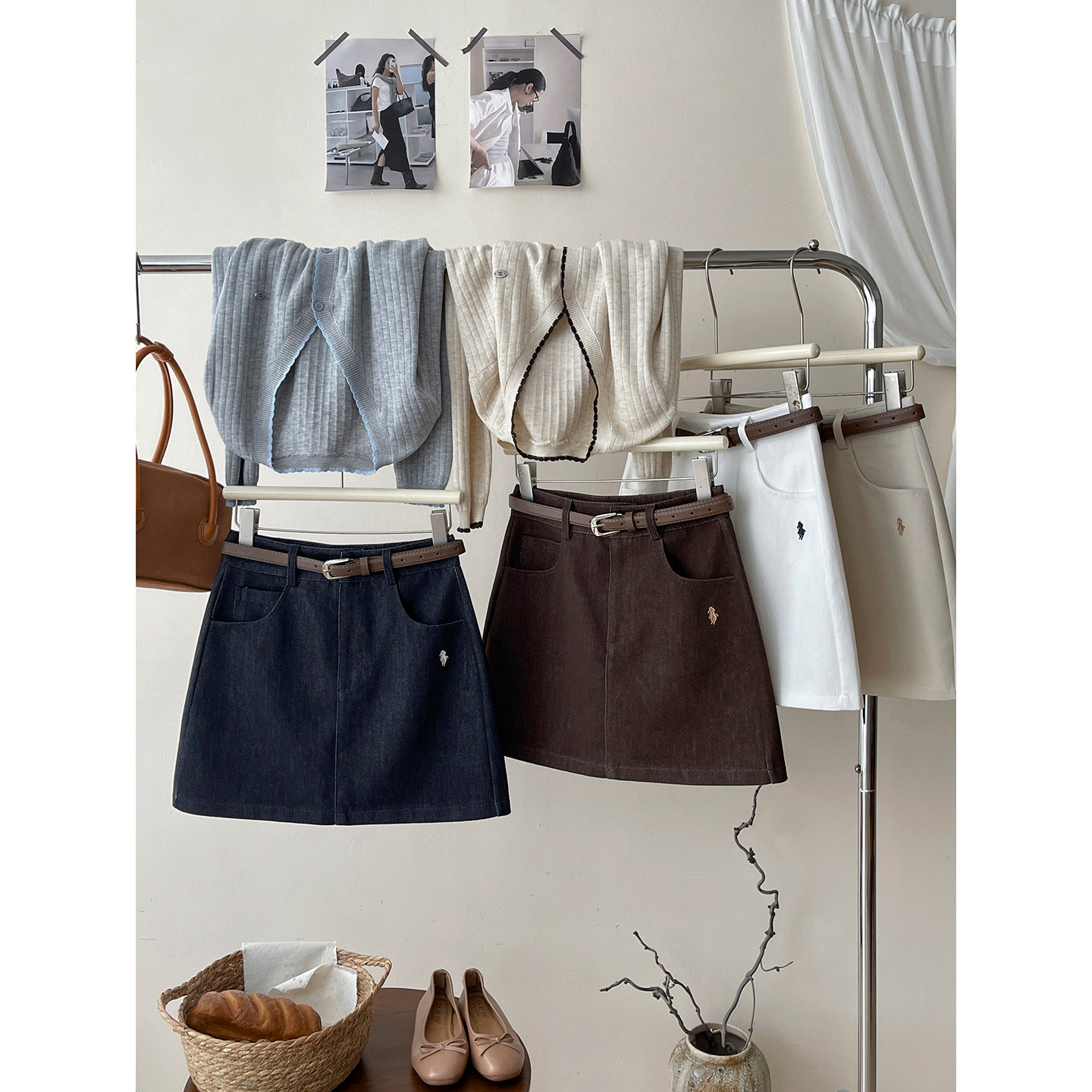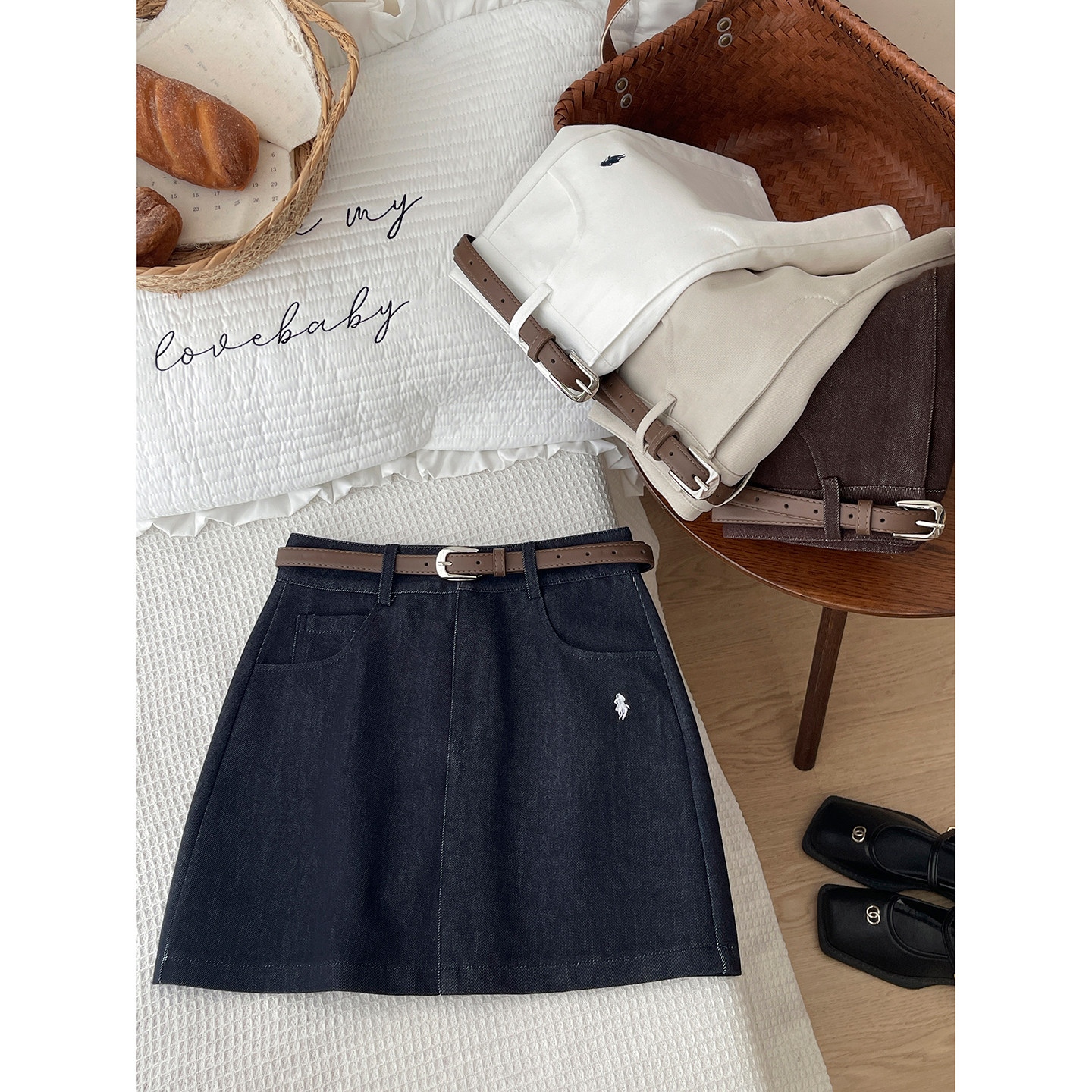 韩国chic复古百搭马刺绣牛仔短裙女秋美式洋气包臀辣妹A字半身裙