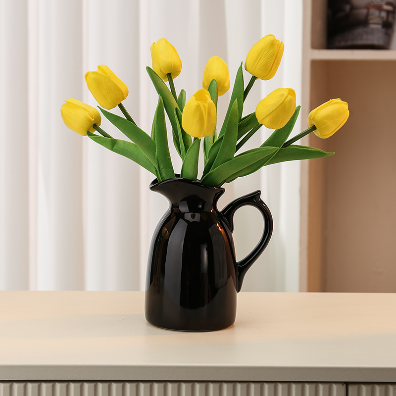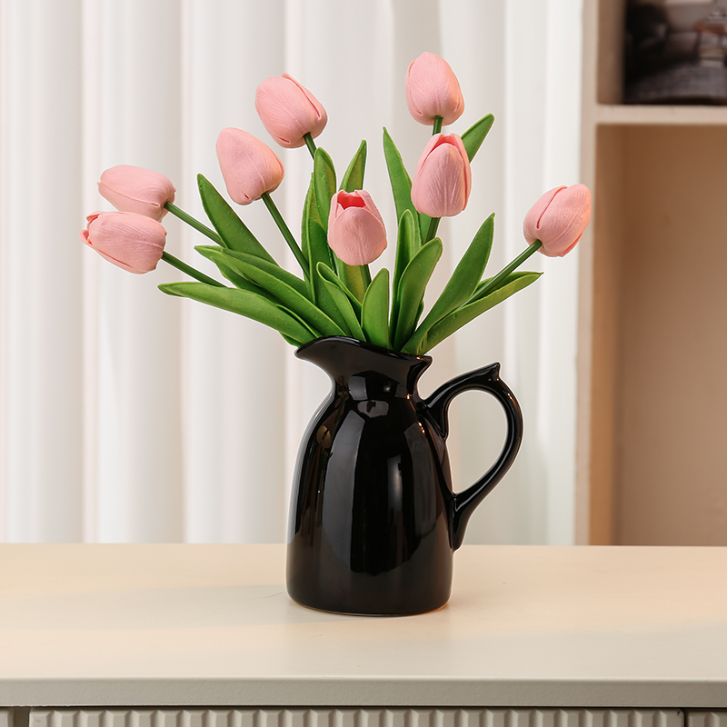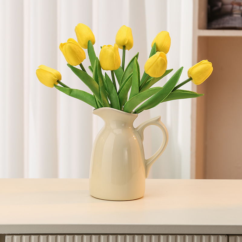 陶瓷可爱提手奶壶花瓶摆件客厅插花奶油风高级感花器家居桌台摆设