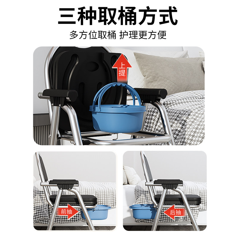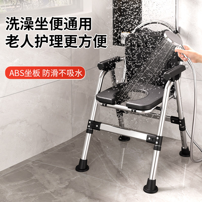 老人坐便椅残疾病人坐便器不锈钢加厚座便椅家用洗澡折叠移动马桶