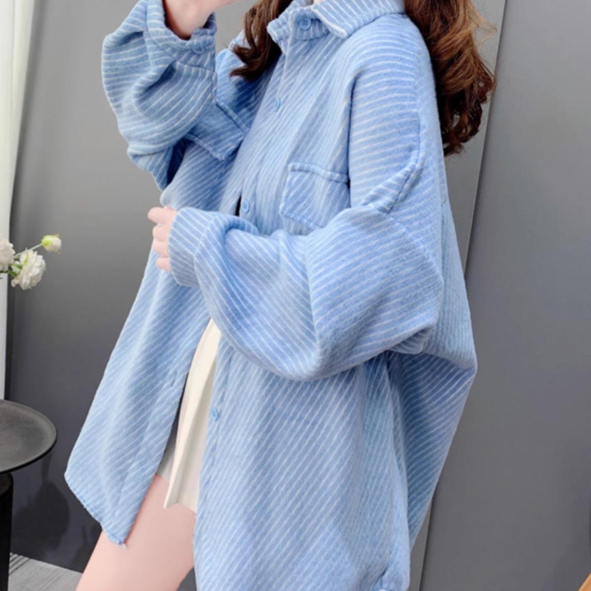 加厚衬衫女秋冬新款中长款毛呢大衣宽松港味长袖设计感休闲外套潮